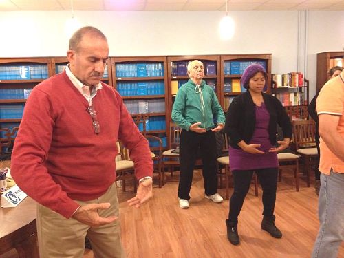 伊利瑟说,他在十年前就听说法轮功了,但没有学,只是送给一位朋友一本《转法轮》。这次自己一定要学,还要给自己买一本书。据记者了解,天梯书店本期九天班结束时,伊利瑟不但给自己买了《转法轮》,还买了炼功音乐光碟。看他幸福的样子,记者都禁不住为他高兴呢。