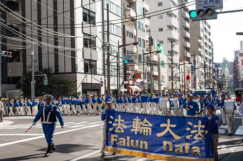 二零一四年十月二十五日,来自日本各地的法轮功学员在东京的著名旅游区浅草寺举行了游行。气势盛大的天国乐团,鼓声阵阵的腰鼓队使拥挤的浅草旅游区精神为之一振。