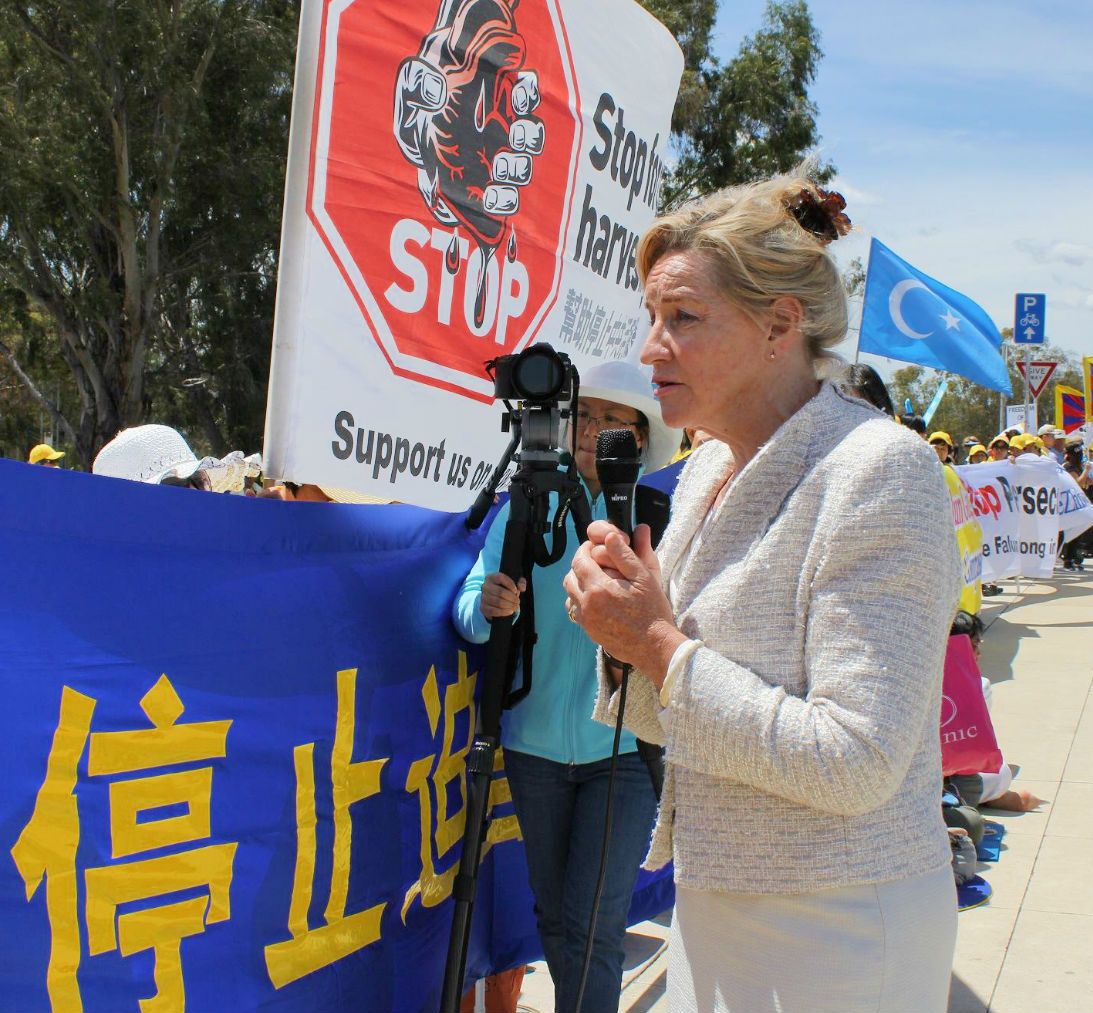 发言时她说道:“很高兴来到这里(法轮功学员集会现场),珀斯有许多法轮功学员在很多不同的场合来找过我。……我们将加入你们的诉求,希望中国在经济方面的条件放宽能够延伸到对待法轮功学员的问题上。我深信法轮功学员只希望中国社会最好,的确是这样,你们修炼法轮功,对中国将起到积极正面的作用,我们在澳洲已经见证了这一点。在澳洲我们知道,拥抱多元化使我们的国家更加强大。从立国的意义上说,国家认同感因此加强。我们想说的是,我们理解法轮功学员的处境,我们理解你们这么多年来对学员被迫害的问题的关注。我们希望中国能拥抱多元化,法轮功蓬勃发展将为中国社会带来好处。”