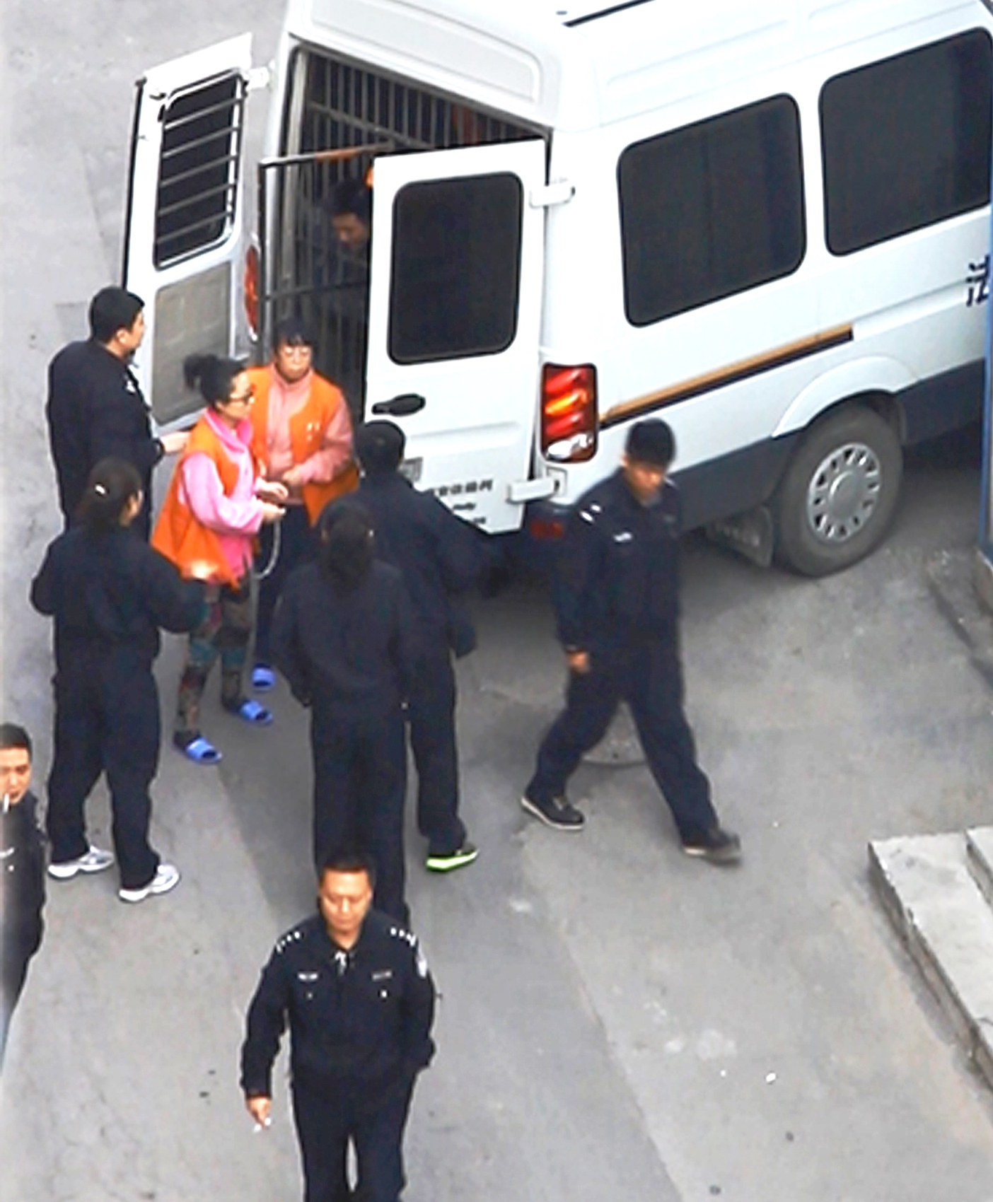 ![]() 图3:二零一四年十一月十八日上午近十点,一辆车号为“辽AA438警”的车驶入沈阳市沈河区法院的后门,被非法关押一年多的沈阳法轮功学员李东 旭女士、高敬群女士(戴黑框眼镜者)从警车上下来。 |