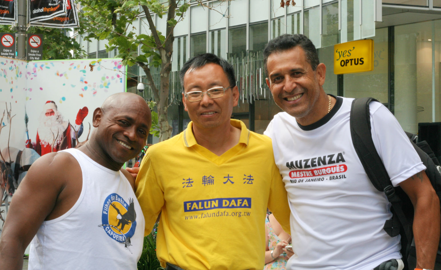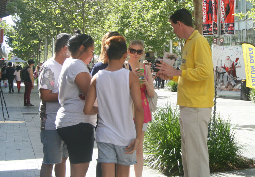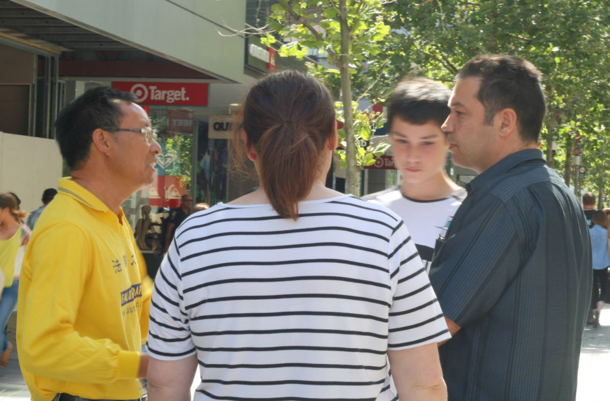 乔治•巴博萨(George Barbosa)是珀斯的卡波耶拉舞(Capoeira,一种巴西的独特舞蹈)教练,带了几十人在同一街道的另一个位置表演。他听完学员讲述中共如何大规模活摘法轮功学员器官贩卖牟利后,不仅自己签了名,还直接向学员借了征签本,拿了几十份资料,让参加当天表演的人都签了名。他对学员说:“谢谢你们告诉(我们真相),我们与你们在一起,世界需要关爱、善良和自由。”