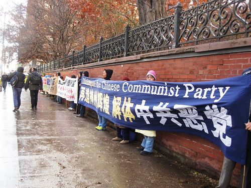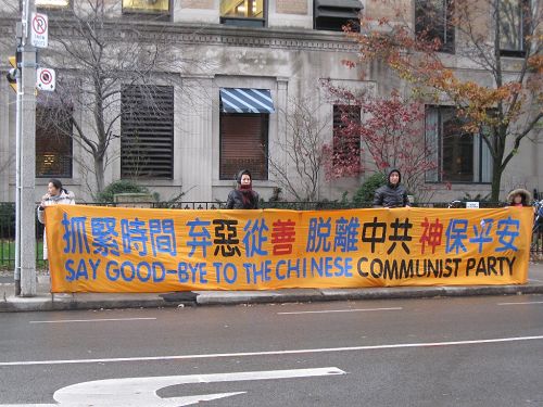 当天前来“筑”真相长城的法轮功学员中,有的自《九评》出版后,每天给大陆华人打电话劝三退,也有长期在中领馆或旅游景点讲真相劝三退。
