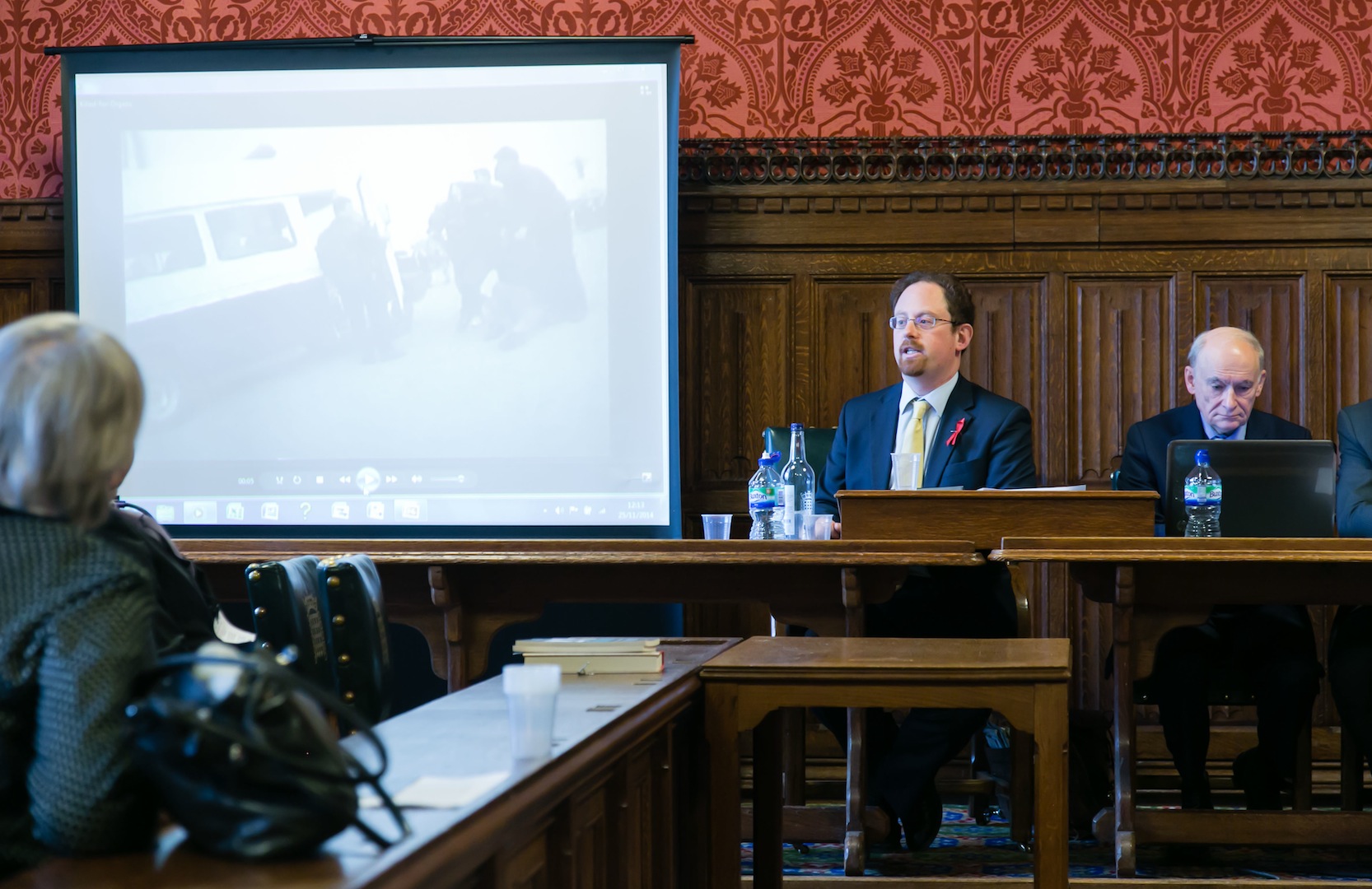 ![]() 英国自民党国会议员朱利安·于佩尔(Julian Huppert)正在主持DAFOH在英国议会大厦举办的研讨会 |