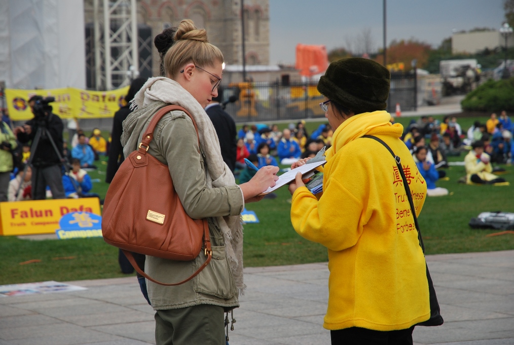 ![]() 加拿大国会山前,路人签名声援法轮功反迫害 |