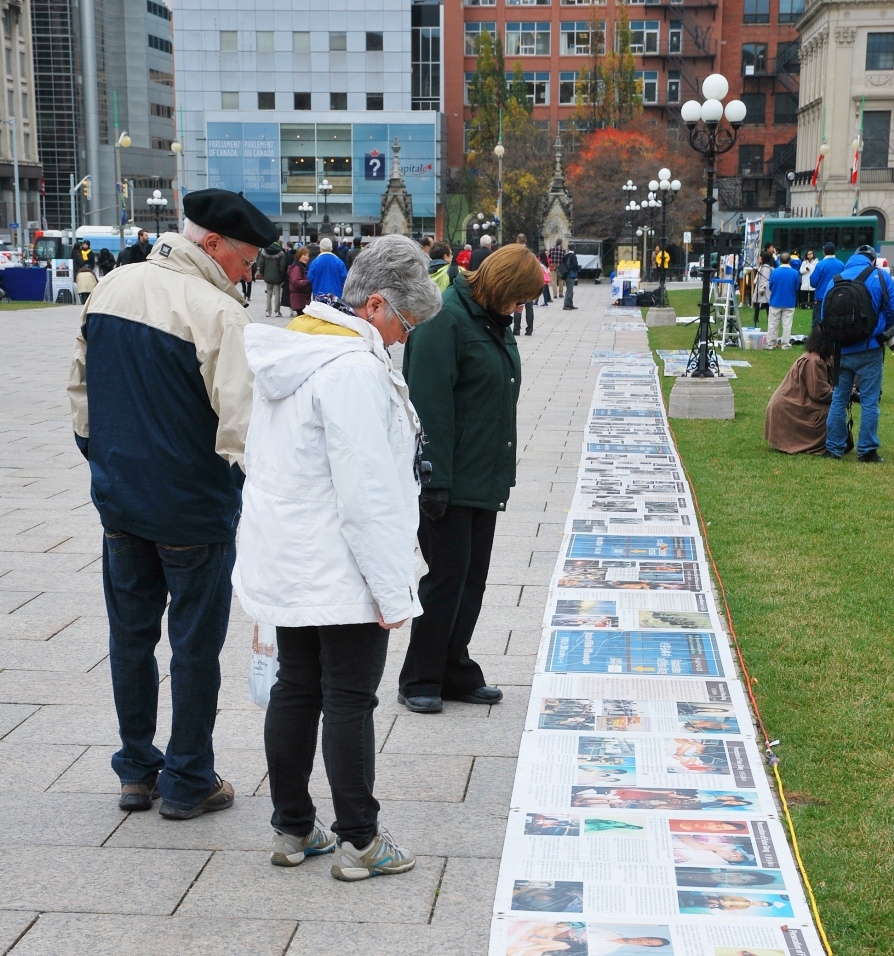 来自安省Collingwood的游客Doug Palmer先生在现场观看着法轮功学员的炼功场面,还拍了很多照片,他在制止迫害征签表上签名后说:“我今天在这了解了很多,迫害绝对是错的。活体摘取人体器官这么没人性的迫害,一定要停止。没有人知道人的灵魂会到哪去,如果为了钱而杀人,那是要遭天谴的。这么残酷的迫害已经十五年了,真的希望这次哈珀的中国之行,不要只为了生意和金钱,而真能为停止迫害法轮功出声。”