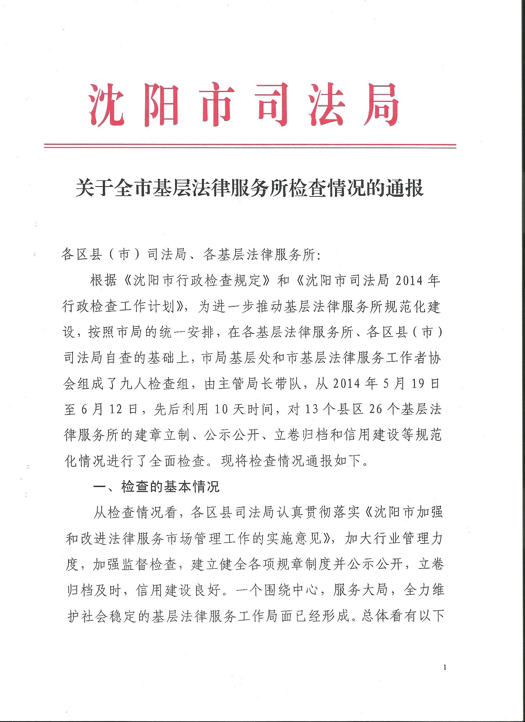 沈阳市司法局发布的“关于全市基层法律服务所检查情况的通报”下载(3.7MB)