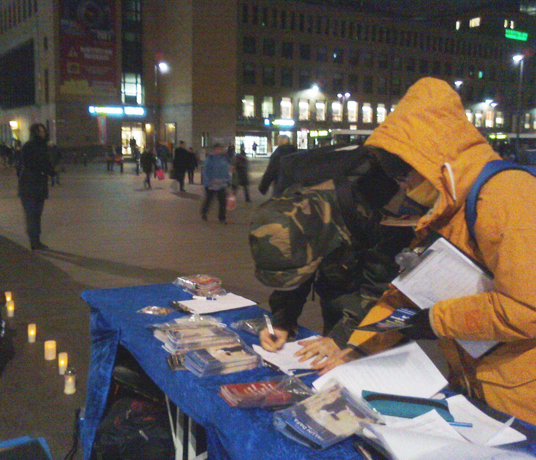 ![]() 图:芬兰赫尔辛基,寒风中民众支持法轮功反迫害 |