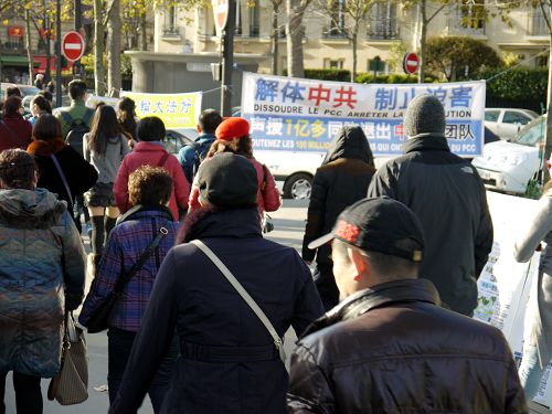 【明慧网二零一四年十二月十五日】(明慧记者周文英巴黎采访报道)虽然时值冬季,仍然有很多中国大陆游客来法国巴黎旅游。在观光景点,或在用餐、购物时分,或在拍摄之际,法轮功学员向游客们讲真相,劝三退(退出中共党、团、队,简称三退),明真相的中国游客选择了退出中共邪灵组织,开始了新的人生旅程。“走遍欧洲,最美在巴黎!”一个大陆游客这么说。