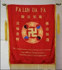![]() 李洪志师父授予双城市法轮功学员的法轮旗 |