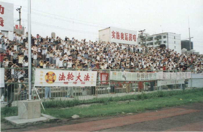 一九九四年八月五日至八月十二日,应哈尔滨市气功科研会的邀请,李洪志先生在哈尔滨市飞驰冰球馆举办了为期八天的法轮功学习班,参加人数达四千五百多人。他们来自全国各地,涵盖了社会各个阶层:工人、农民、国家干部、军人、教师、医生、护士、工商个体户,也有公、检、法人员,还有大学生。