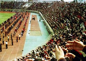 ![]() 一九九八年八月哈尔滨学员纪念李洪志老师来哈传法四周年三万人集体炼功场面 |