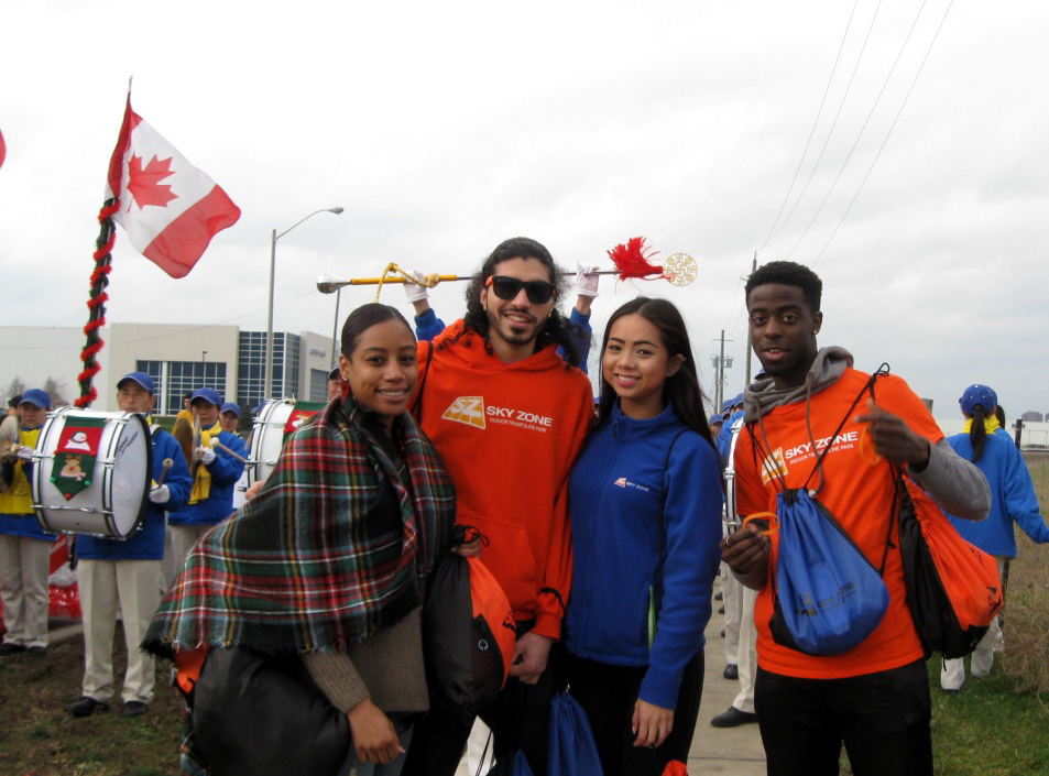 Lisa是参加这次游行的一个团体的成员,该团体的队伍正好排在天国乐团的前面,出发前,他们一直在观看着天国乐团的排练演奏。Lisa高兴地说:“这个乐团非常有震撼力,队员很自律,排队等了这么长时间,他们一直在排练。他们的服装颜色、音乐都很美。我们一直在享受并欣赏着。”