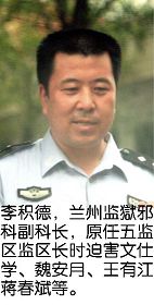 据不完全统计,兰州监狱自一九九九年七月至今先后非法关押大约二百多名法轮功学员。下面是兰州监狱对法轮功学员所实施的酷刑:
