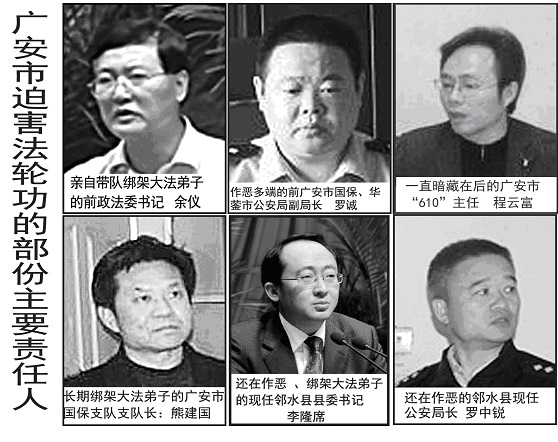 广安市从上至市委、下至各县的乡村,都有专门负责迫害法轮功的“610”人员,分管政法的市委副书记为头领,各级610负责指挥和监控、国保公安负责绑架法轮功学员。