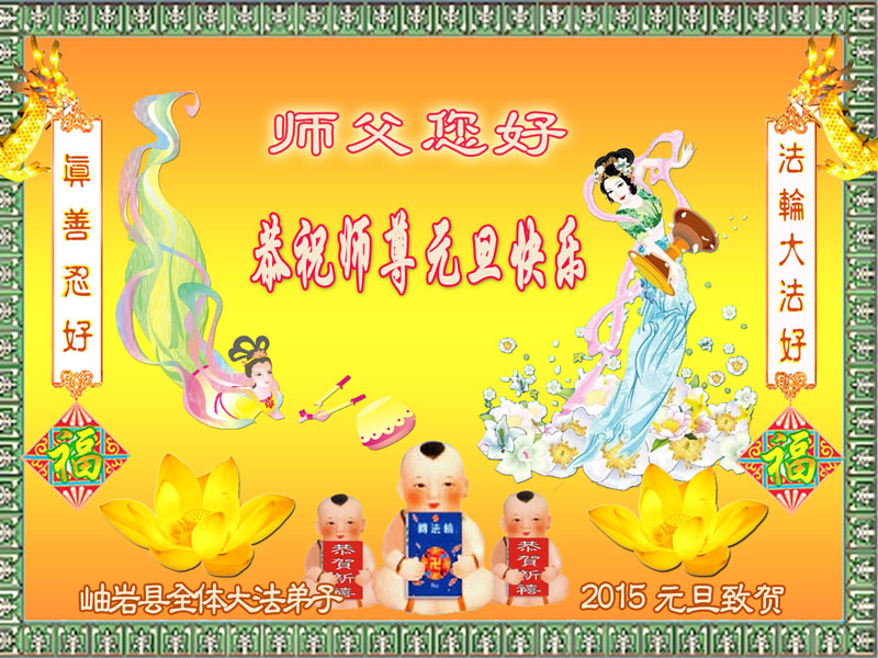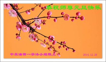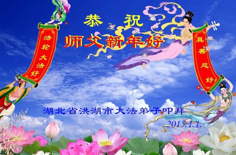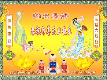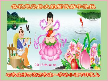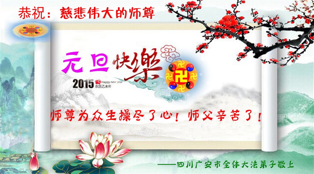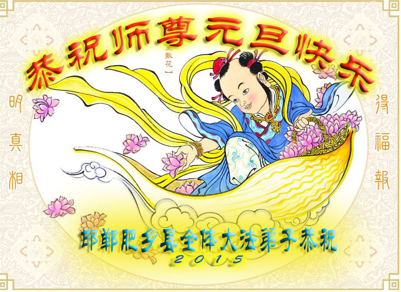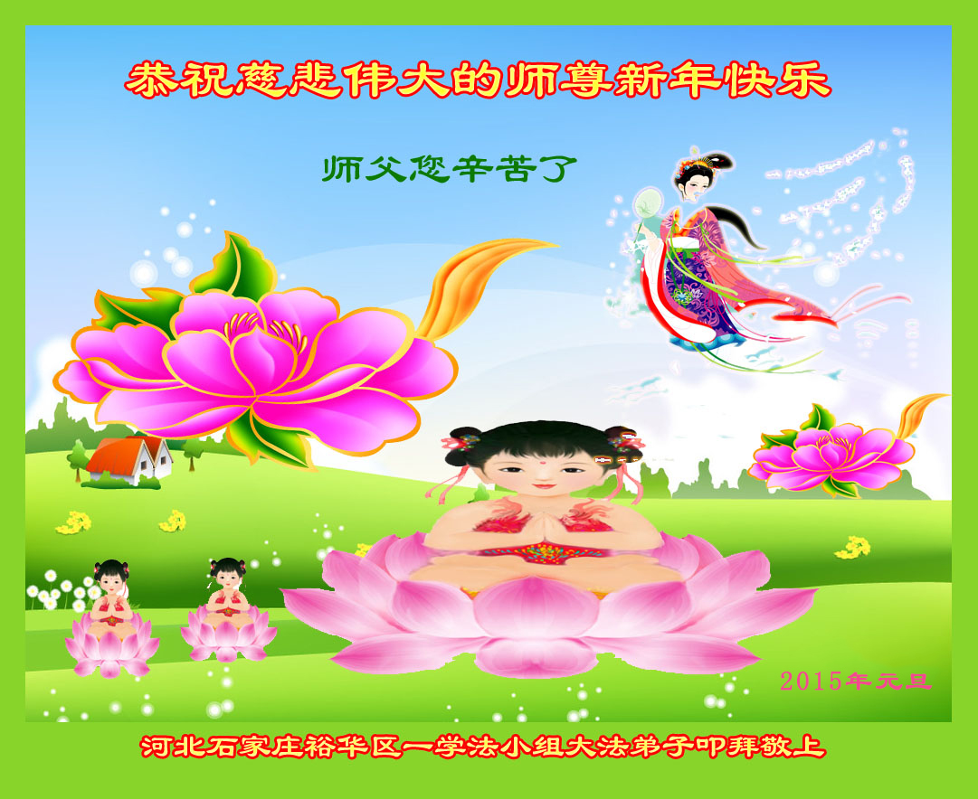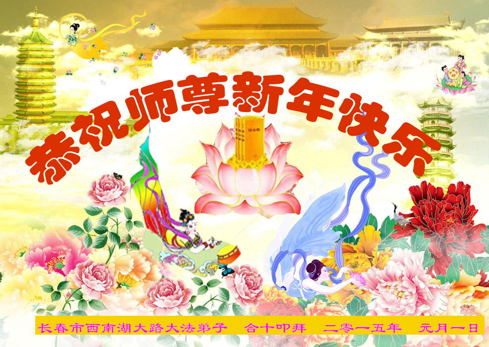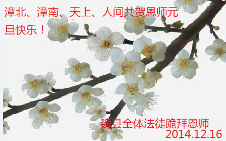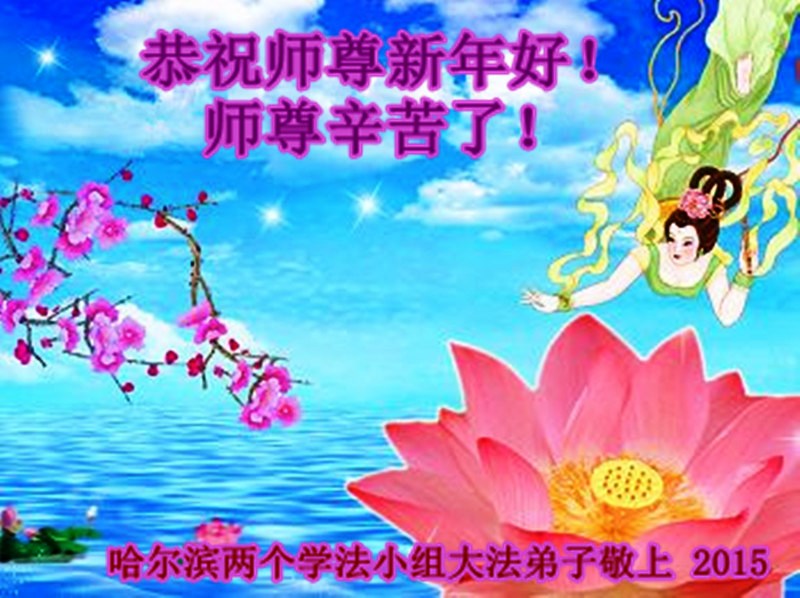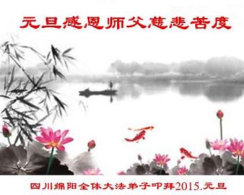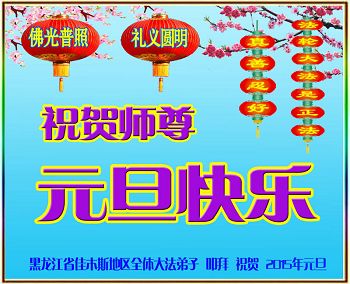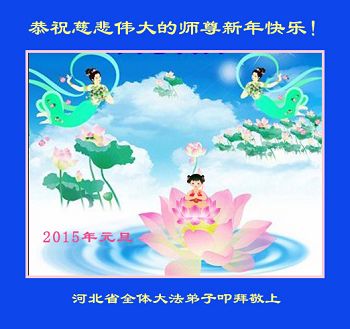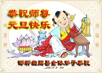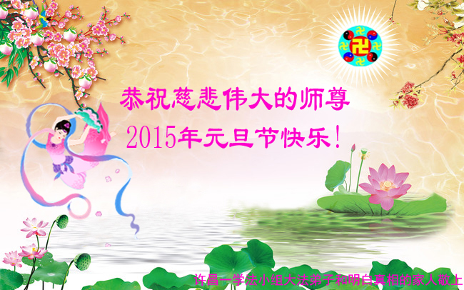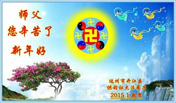 在二零一五年元旦来临之际,濮阳地区、中原油田全体大法弟子恭祝慈悲伟大的师尊元旦快乐!愿师尊在新的一年里多一份欣慰,少一份操劳,请师尊放心,弟子们一定会尽心尽力做好三件事,牢记师尊教诲,不辜负众生的殷殷期盼。