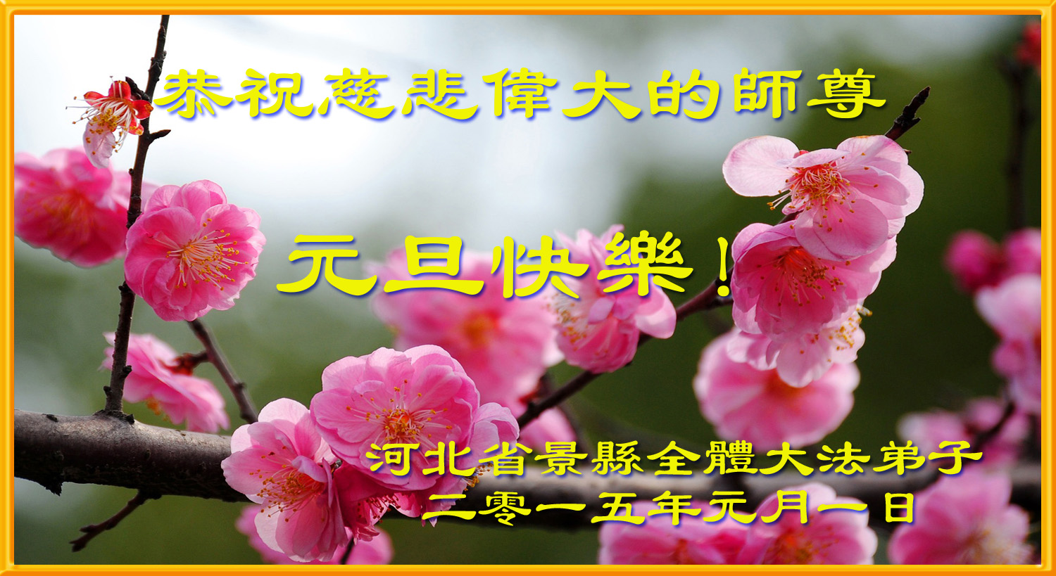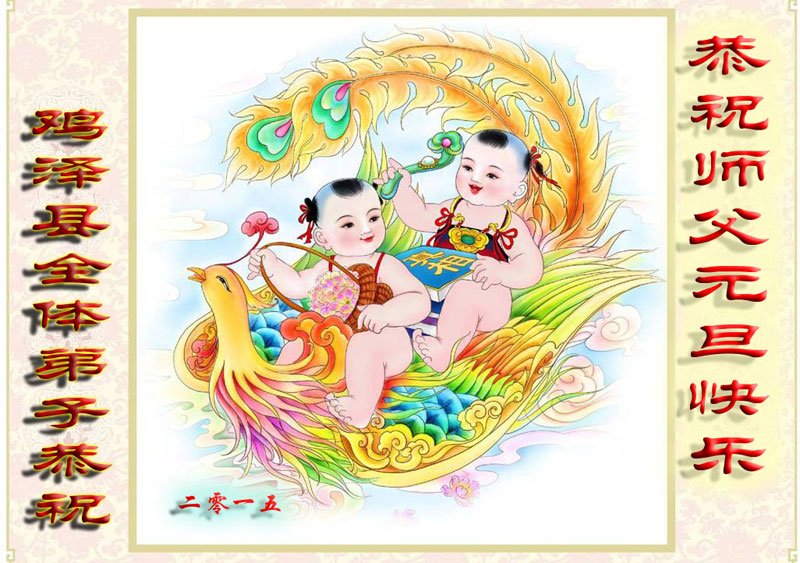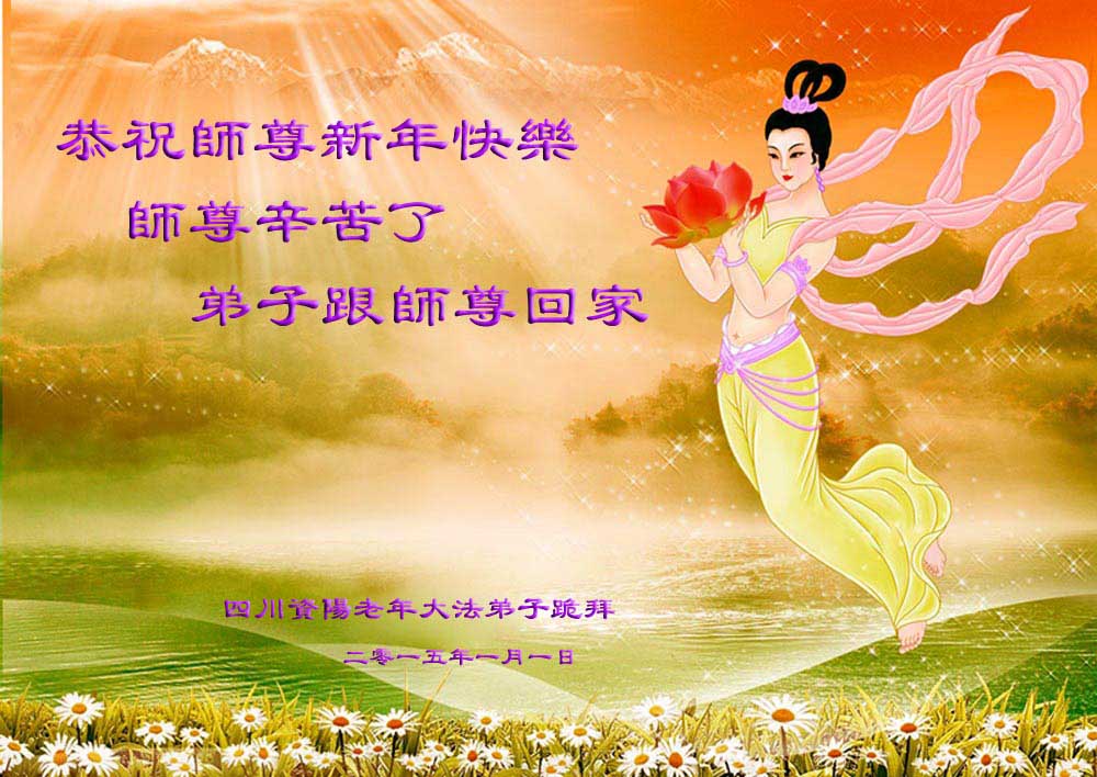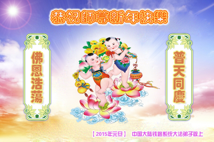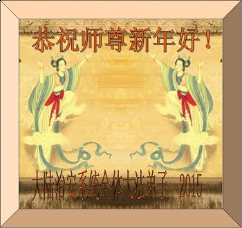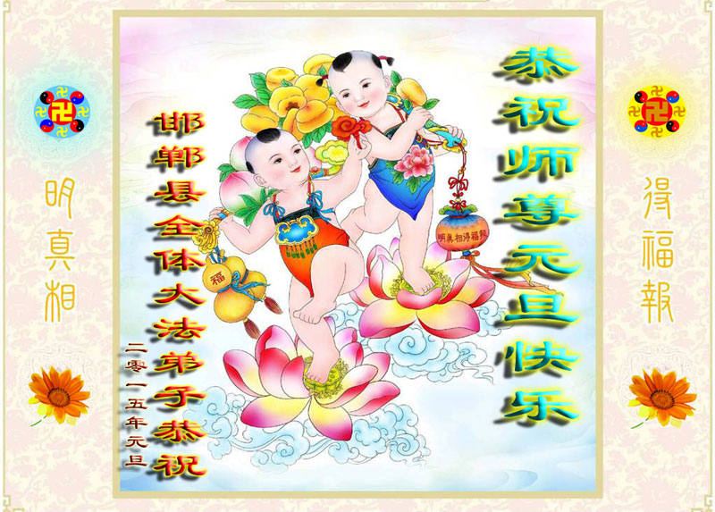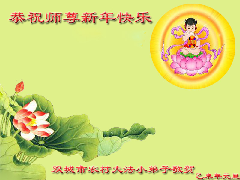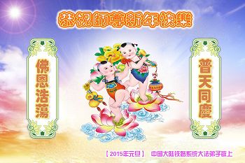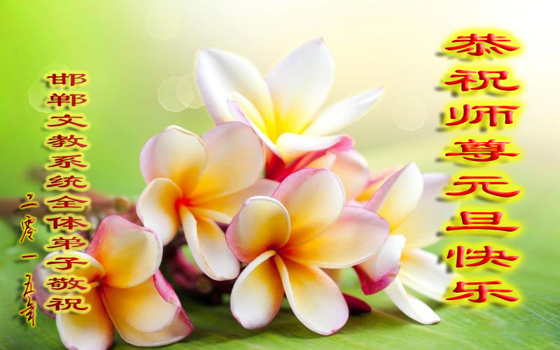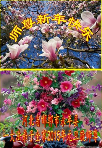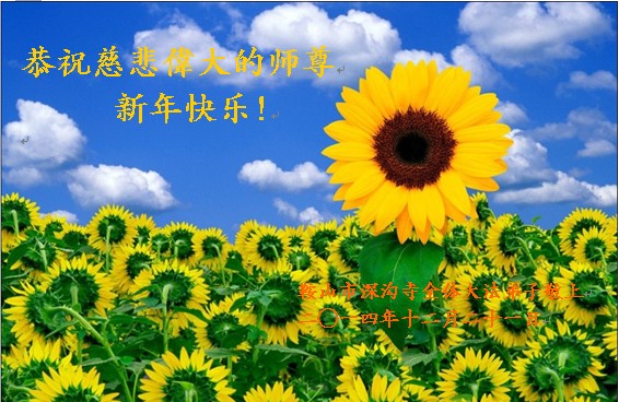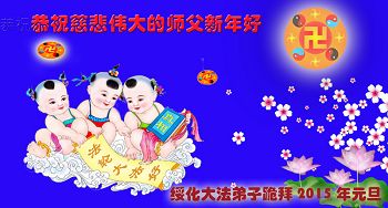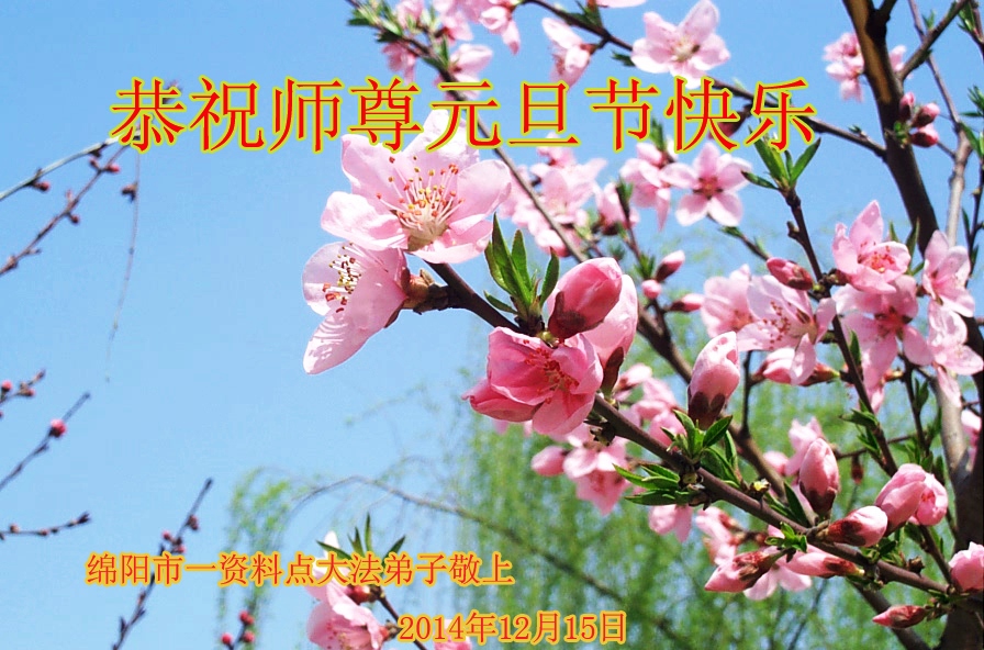 在二零一五年元旦来临之际,濮阳地区、中原油田全体大法弟子恭祝慈悲伟大的师尊元旦快乐!愿师尊在新的一年里多一份欣慰,少一份操劳,请师尊放心,弟子们一定会尽心尽力做好三件事,牢记师尊教诲,不辜负众生的殷殷期盼。