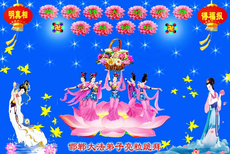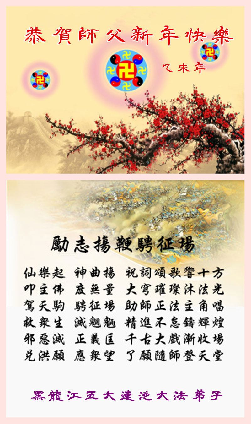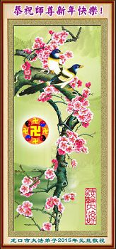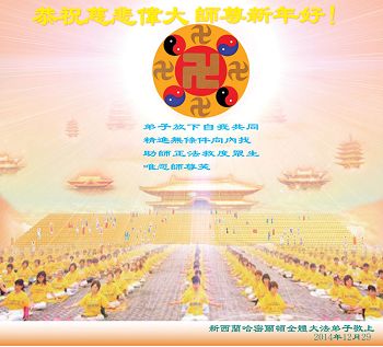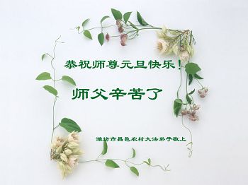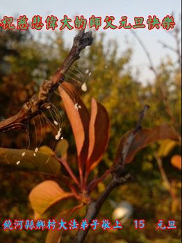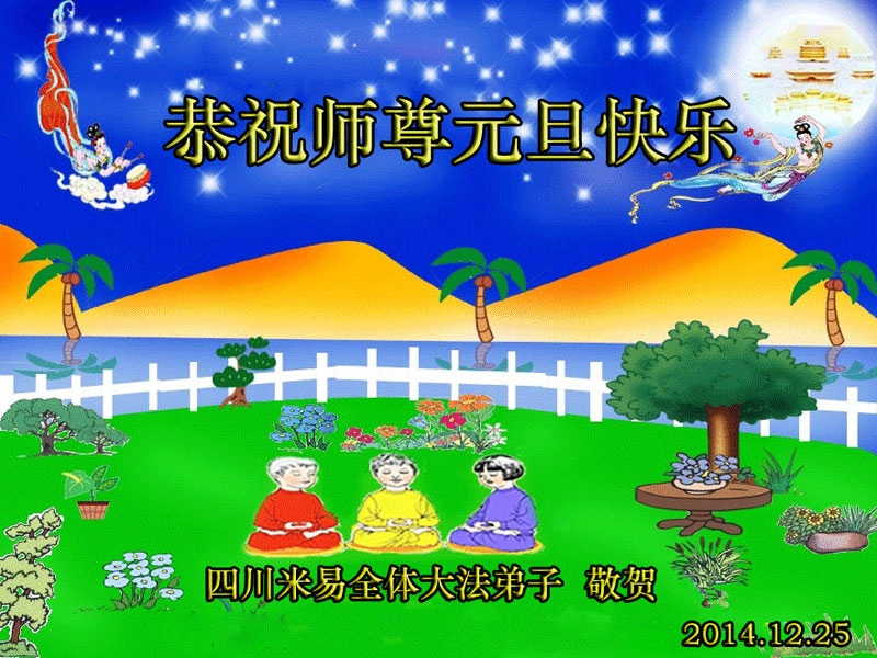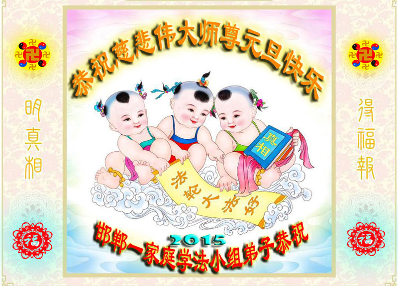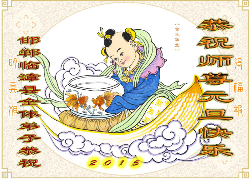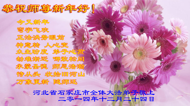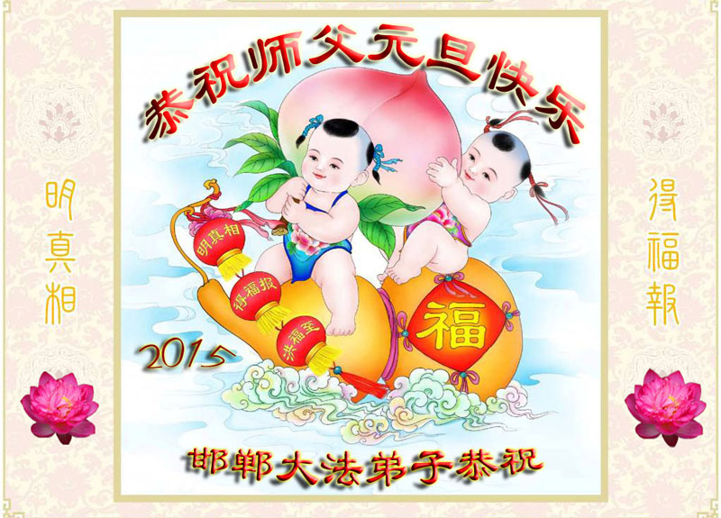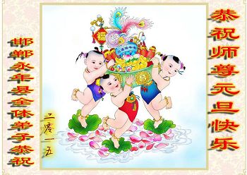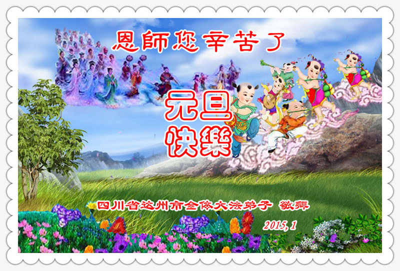 在二零一五年元旦来临之际,濮阳地区、中原油田全体大法弟子恭祝慈悲伟大的师尊元旦快乐!愿师尊在新的一年里多一份欣慰,少一份操劳,请师尊放心,弟子们一定会尽心尽力做好三件事,牢记师尊教诲,不辜负众生的殷殷期盼。