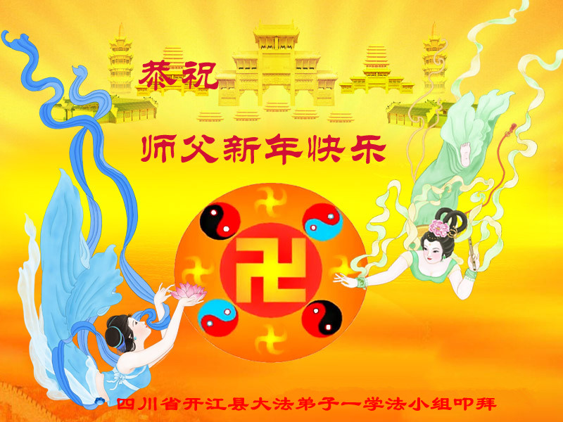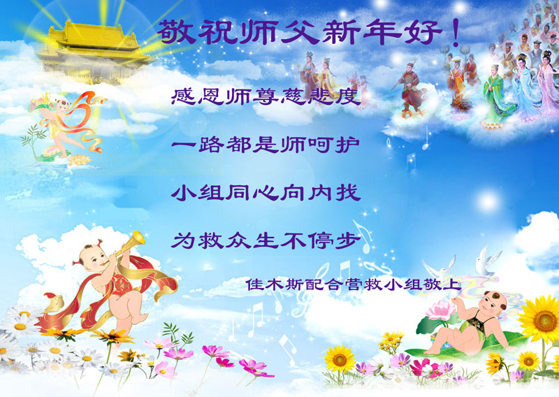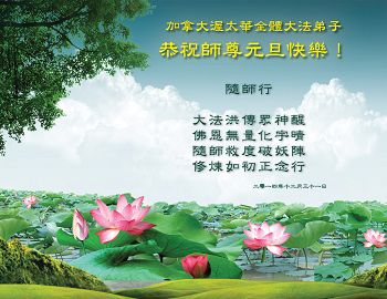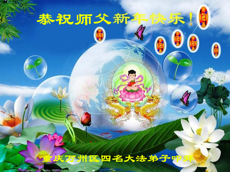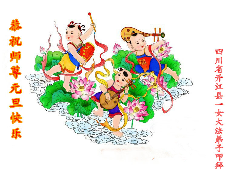 我代表学法小组其他三位同修恭祝师尊元旦快乐!