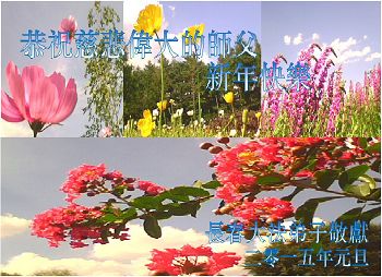 在您巨大的承受与付出中,人类又走向2015年。弟子深深体会到您的洪大慈悲,每一天的延续,都是您给予的我们全新的机会,给予众生得救的机会,给予大法弟子伟大圆满的机会。弟子唯有精進实修,达到修炼如初的状态,才真正有颜见师尊。
