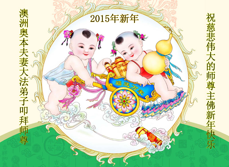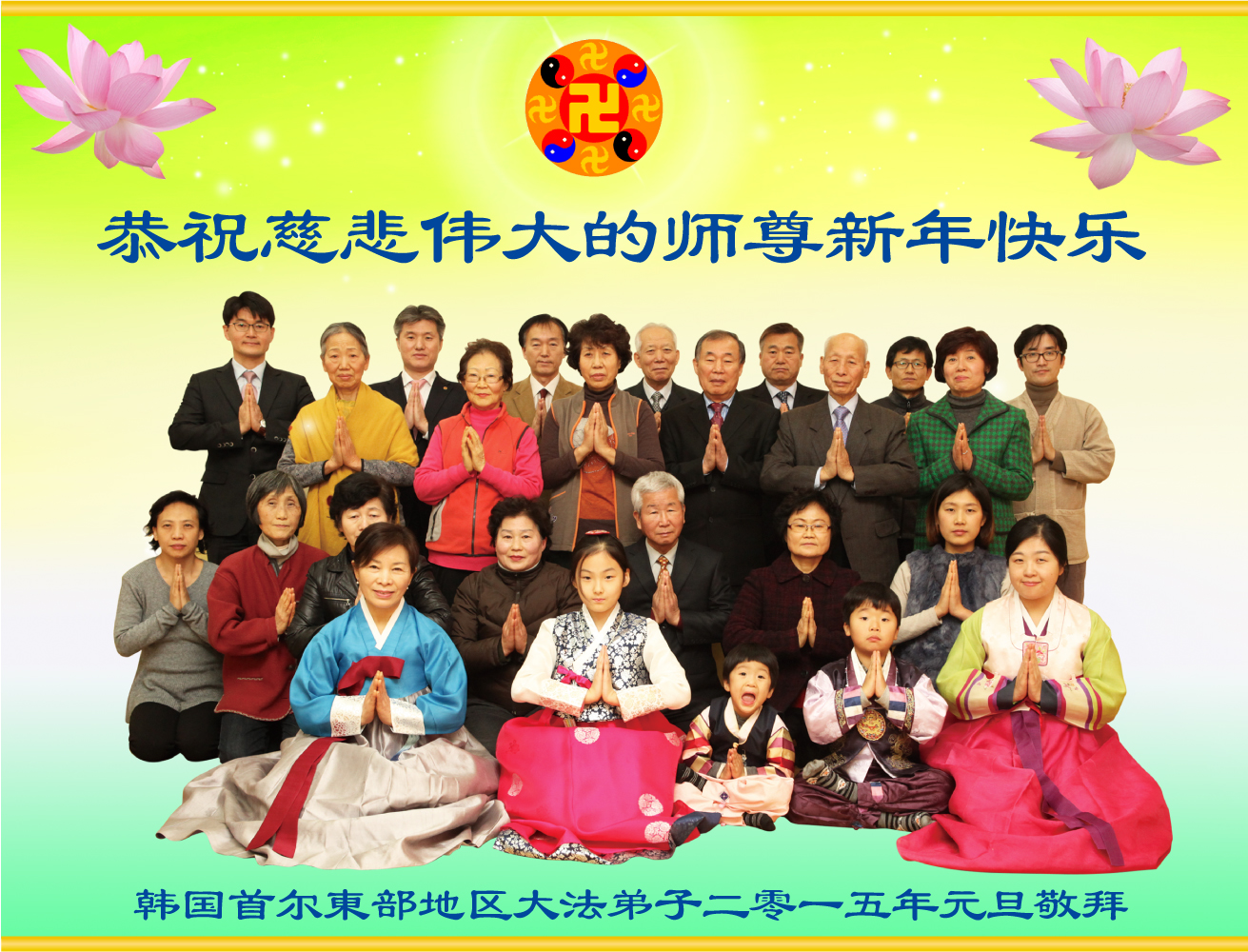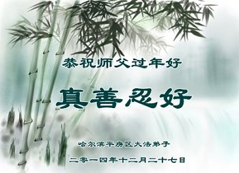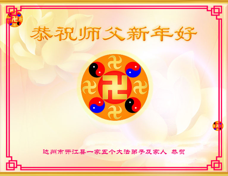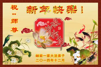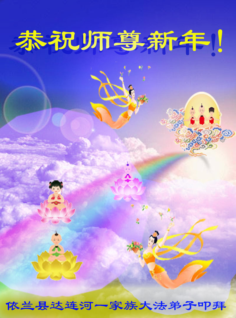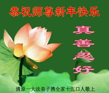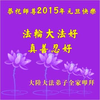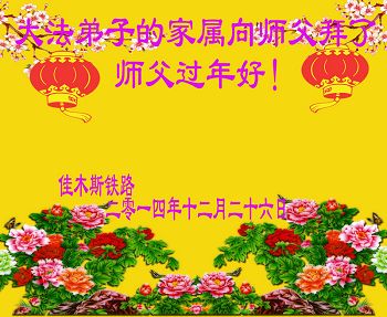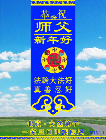 师尊您好!弟子携全家共四位大法弟子叩拜师尊!弟子一定在2015年新的一年修炼如初,共同精進,多救众生,做到:用心、救人、修炼。让师尊多一些欣慰。