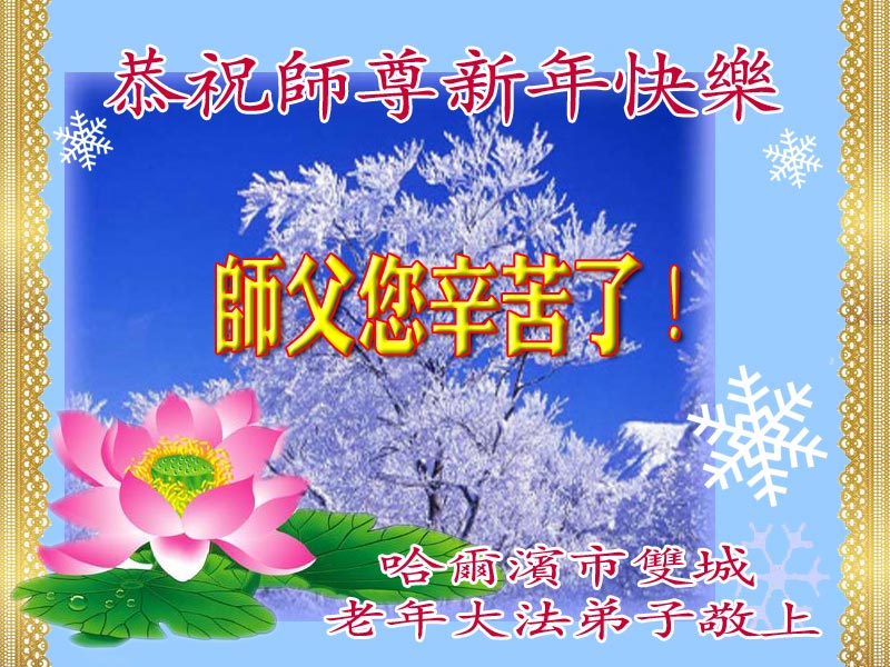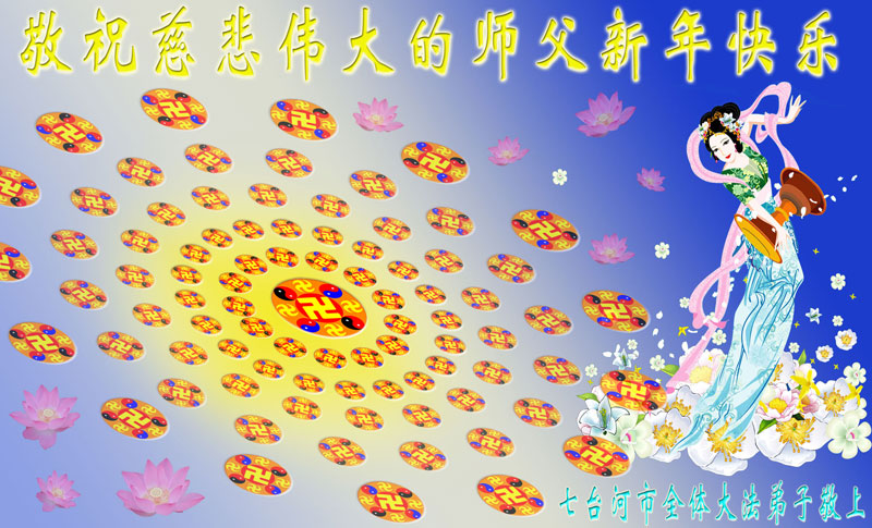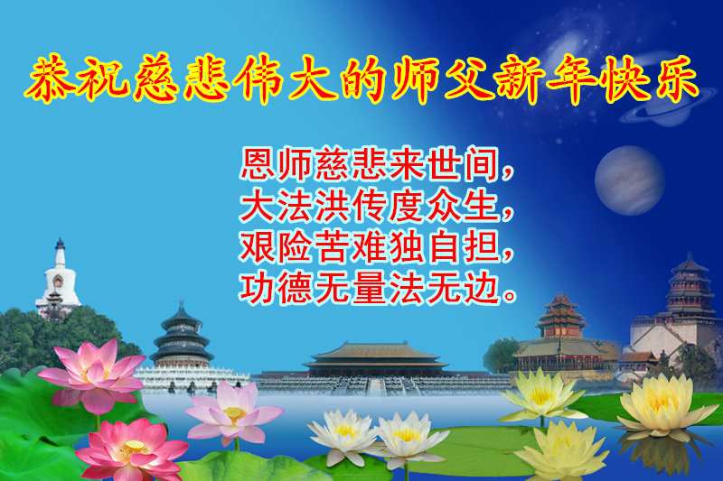 在新的一年到来之际,东营市暨胜利油田大法弟子恭祝慈悲伟大的师父新年快乐!