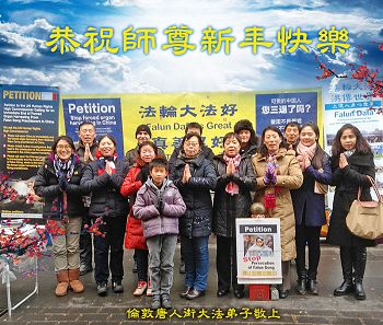 尊敬的师父您好!时光飞逝,新的一年转眼又到来了。在二零一五年元旦,全体法国大法弟子向慈悲伟大的师父问好!