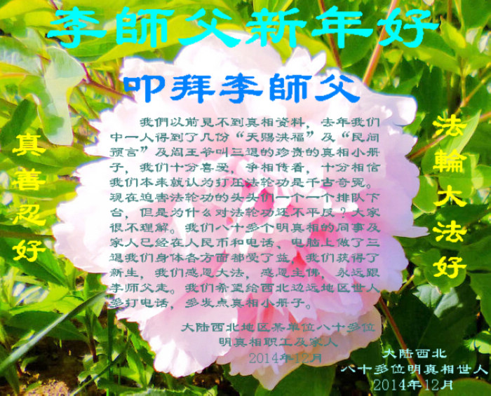 <英文版: http://en.minghui.org/html/articles/2015/1/1/147676.html>美国芝加哥、明州、德州、犹他州等地大法弟子恭祝师尊新年好