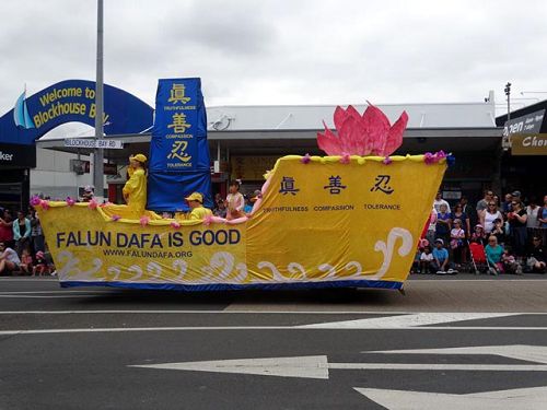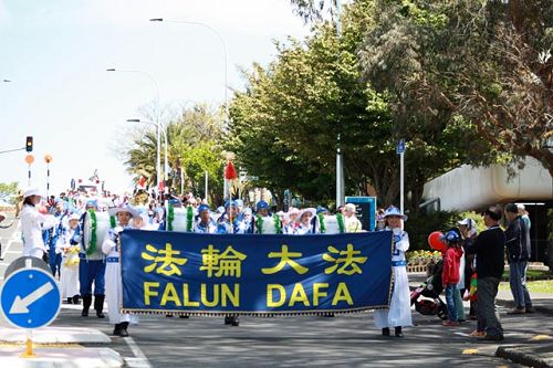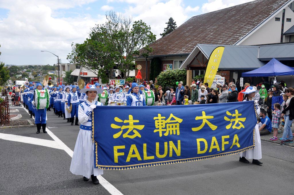 【明慧网二零一四年十二月八日】圣诞节将至,奥克兰各地区的圣诞游行一处比一处盛大热闹,而应邀参加的法轮大法天国乐团和花车成为各区圣诞游行中的一大亮点。乐团整齐雄壮的演奏,令“法轮大法好”的福音响遍了奥克兰各地。