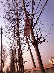 山东法轮功学员在新年期间在公路及铁路边悬挂条幅、书写标语,把真相传播给经过的人们。