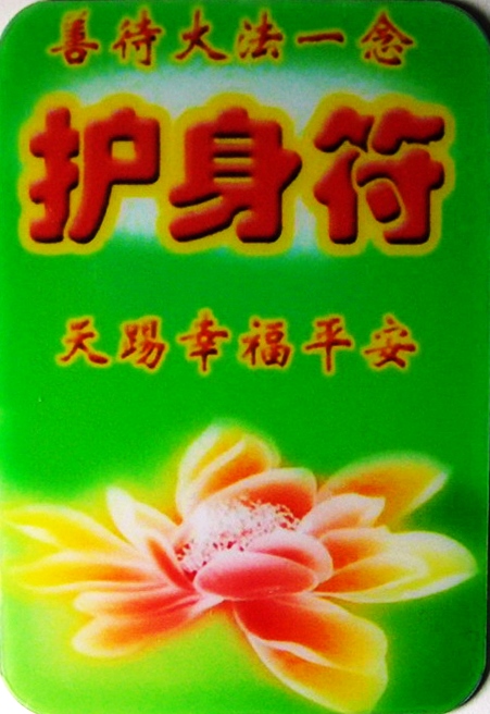 同修家的孩子发现了这个护身符上面的关键字弄错了,将“天赐幸福平安”的“赐”字写成了“踢”字。不知道这样的护身符做了多少?也不知道发送了多少?请同修在百忙中真得对大法负责、对众生负责,对自己的修炼负责,使我们做出的真相真的能起到救度众生的作用。