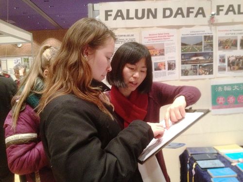 在丹麦健康博览会上弘扬大法 揭露迫害(图)