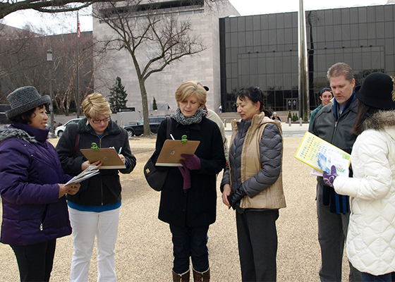 美国首都景点 中西游客了解法轮功