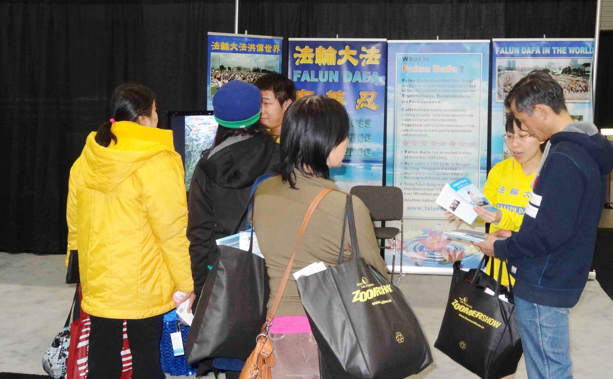 【明慧网二零一四年二月二十七日】(明慧记者张然温哥华报道)二零一四年二月二十二日和二十三日,加拿大温哥华市会展中心,举行了为期两天的Zoomer会展,法轮功(又称法轮大法)学员在展会上向参观者介绍功法,受到欢迎。很多人前来咨询哪里可以学法轮大法,还有很多人前来表示对法轮功学员反迫害的支持和敬佩,有华人现场学炼法轮功,还有华人留学生现场退团。