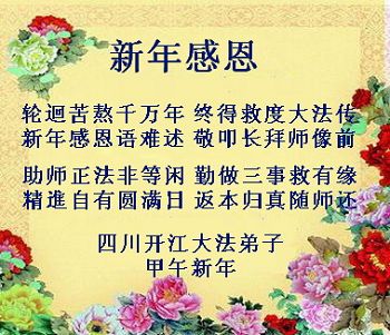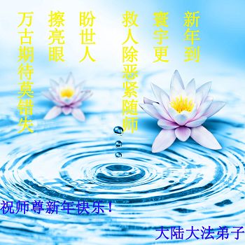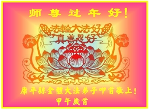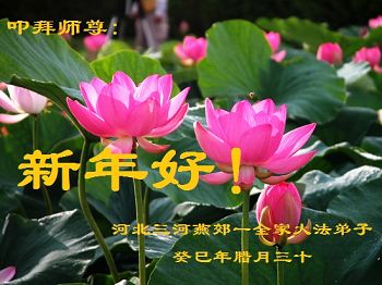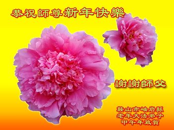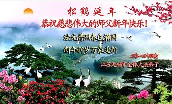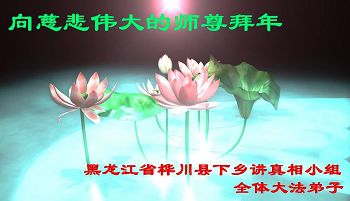 向慈悲伟大的师父拜年。用语言无法表达内心对师父的感恩,只有精進实修,做好助师正法,救度众生的三件事,抓紧时间救人,请师父放心。