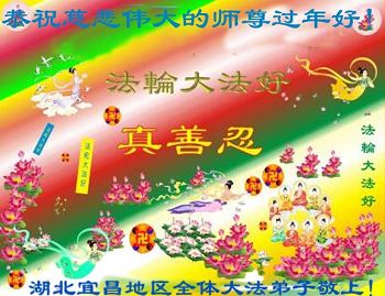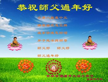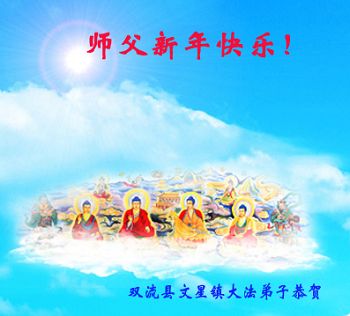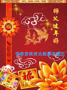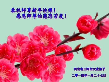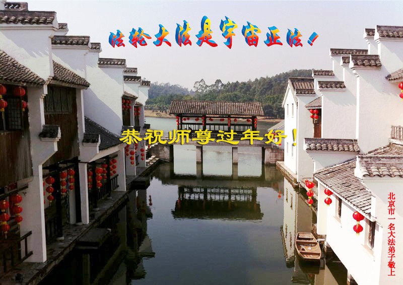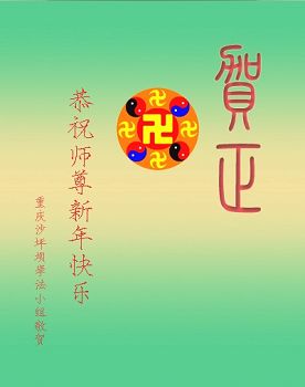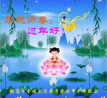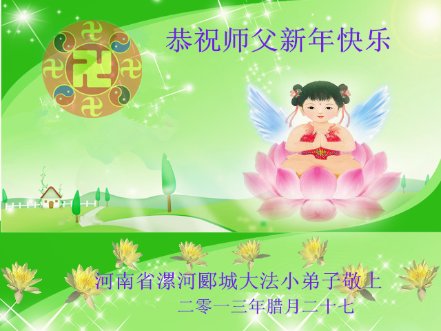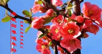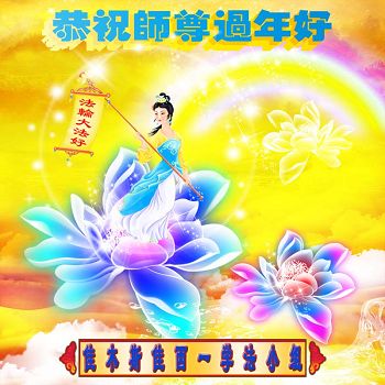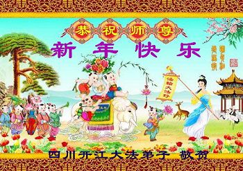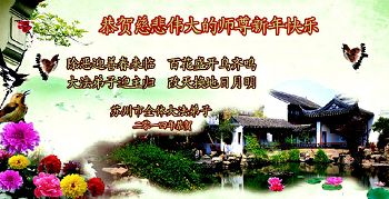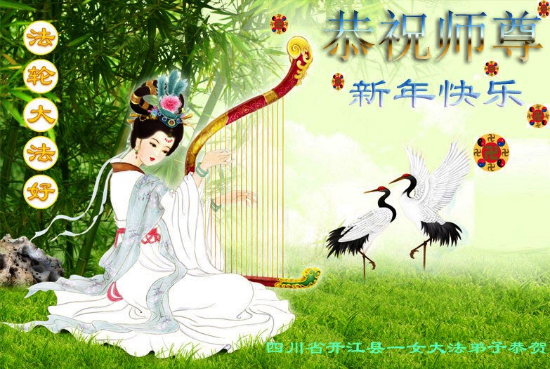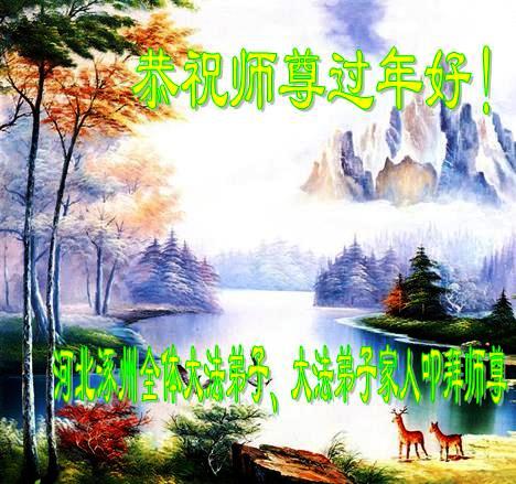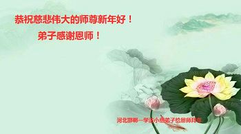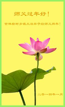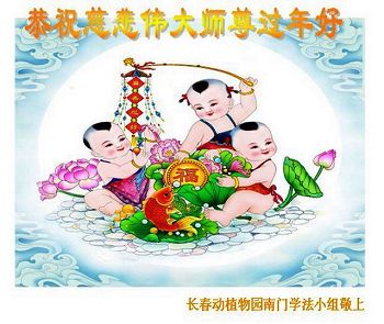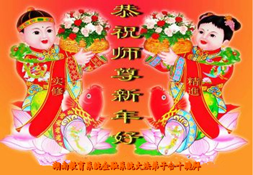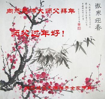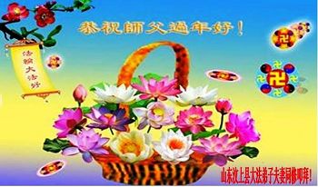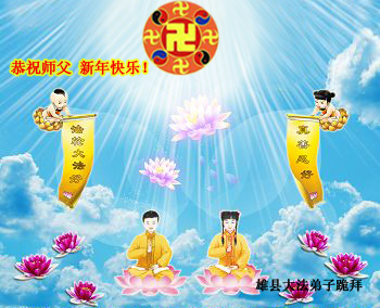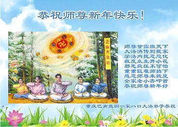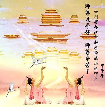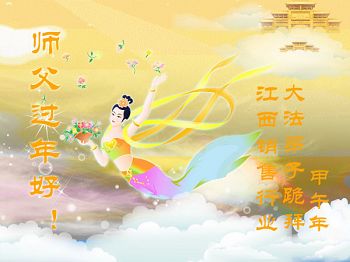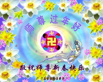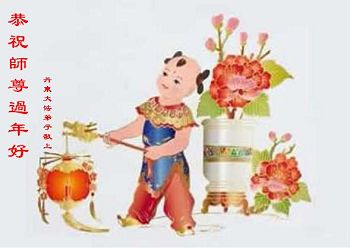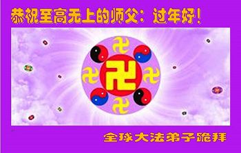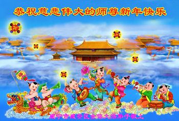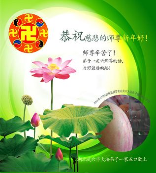 师尊:您将弟子从地狱中捞起,洗净弟子身上的污垢,将“真、善、忍”的宇宙法理传与弟子,弟子对您的感激法用言语表达,值此佳节送上一张贺卡,祝师尊过年好!