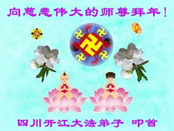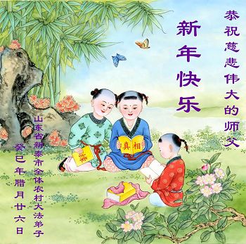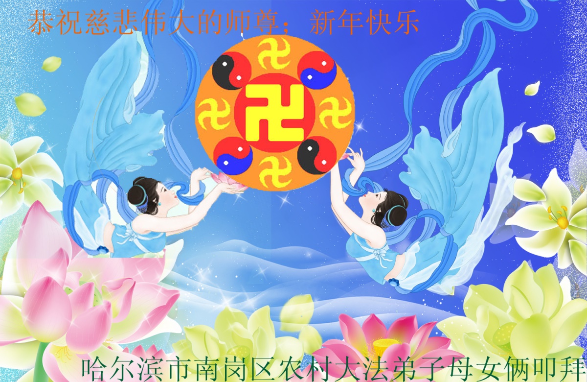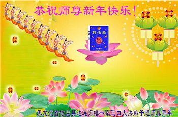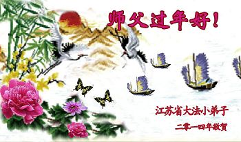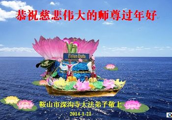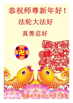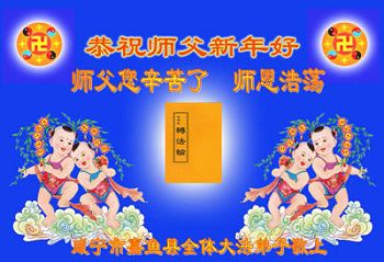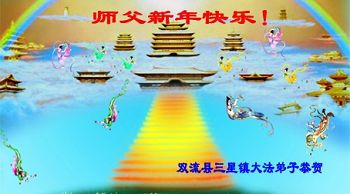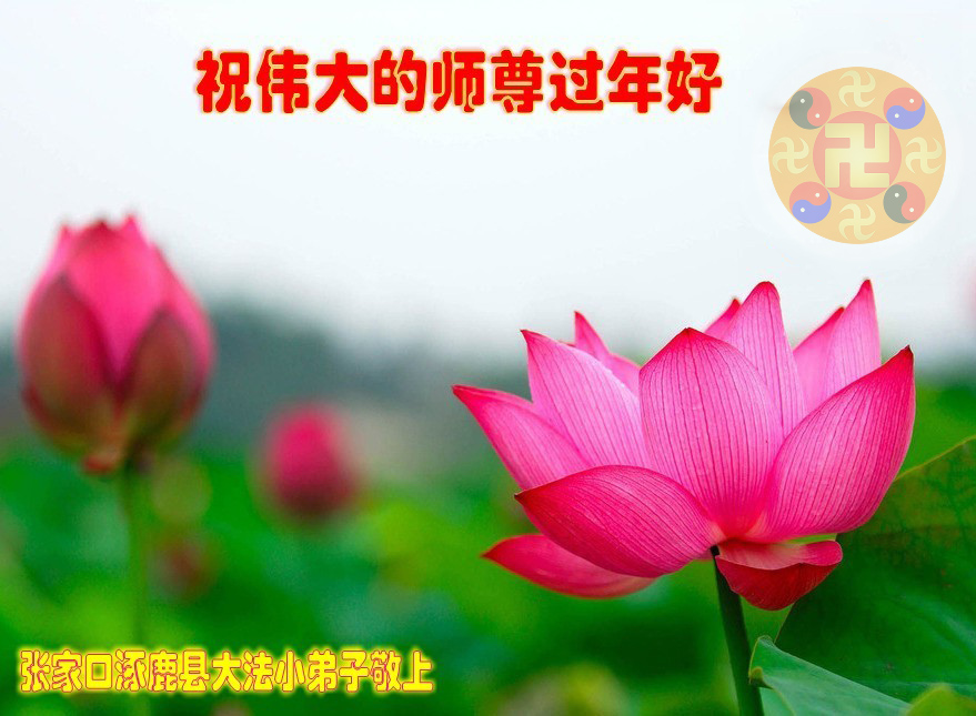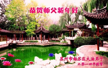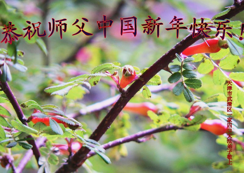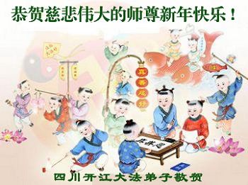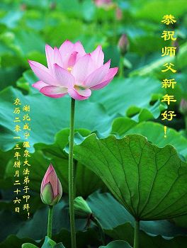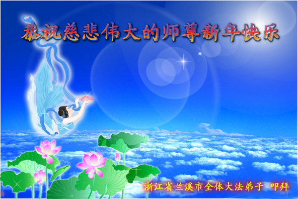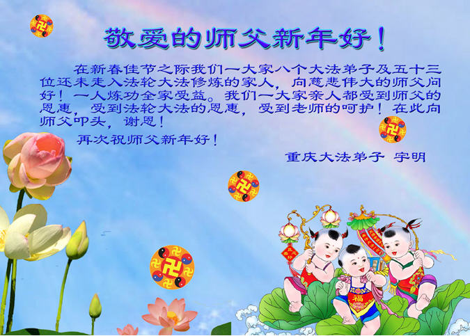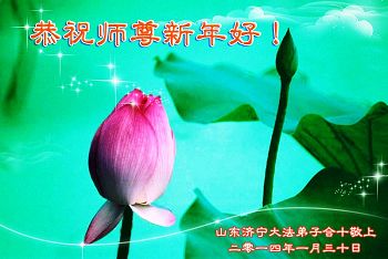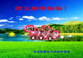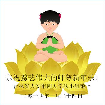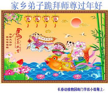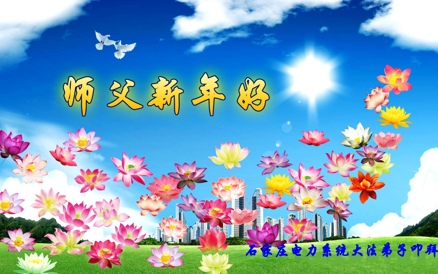 师尊:您将弟子从地狱中捞起,洗净弟子身上的污垢,将“真、善、忍”的宇宙法理传与弟子,弟子对您的感激法用言语表达,值此佳节送上一张贺卡,祝师尊过年好!
