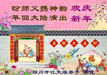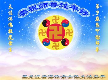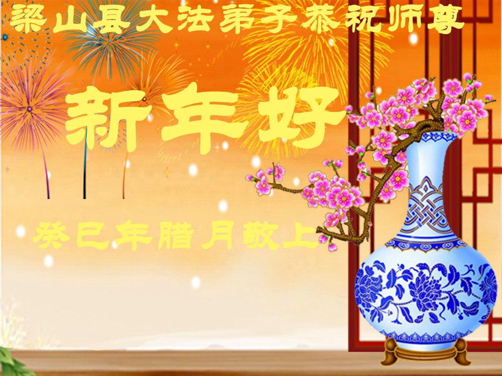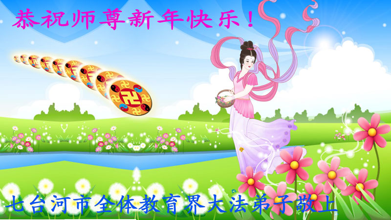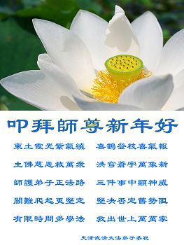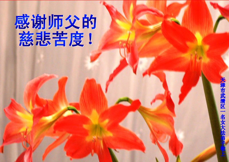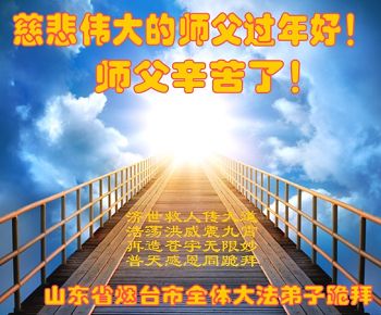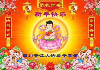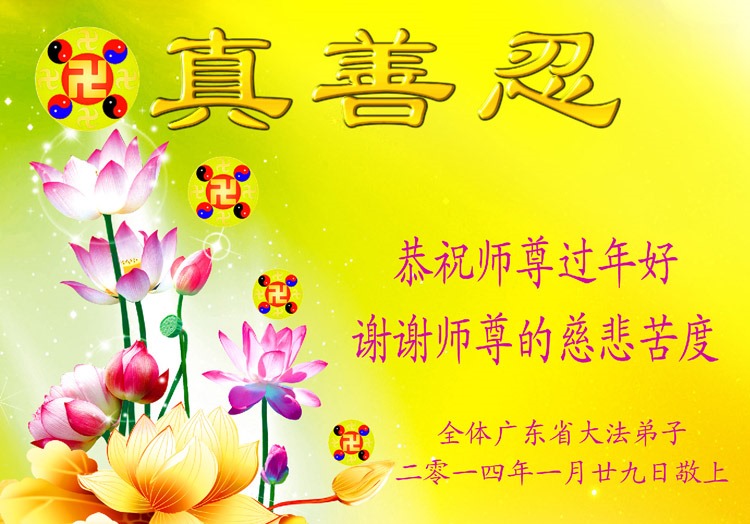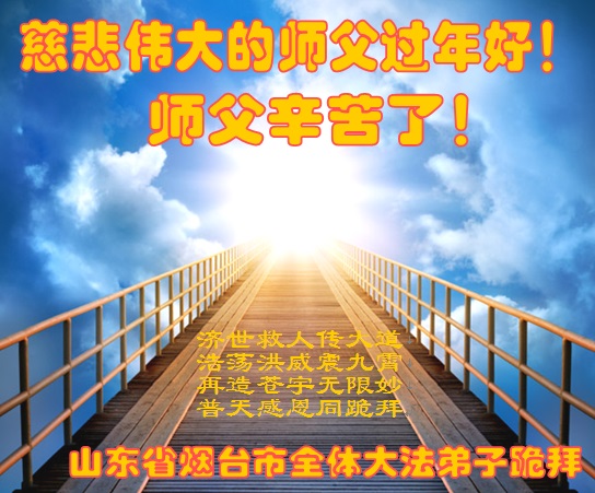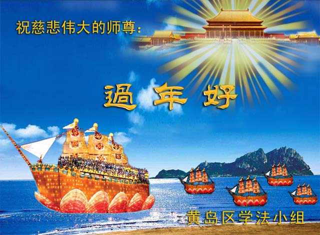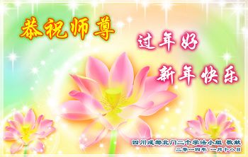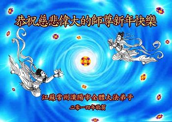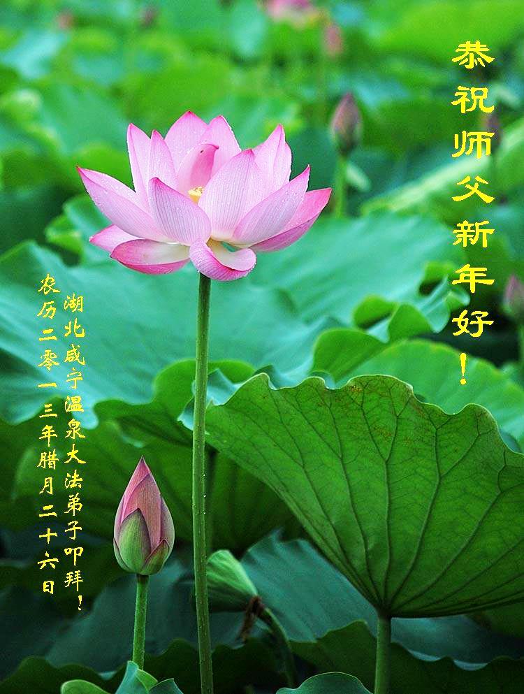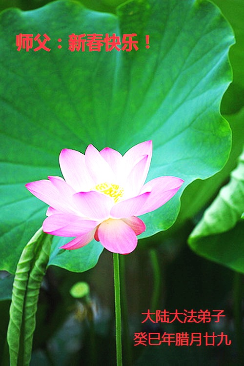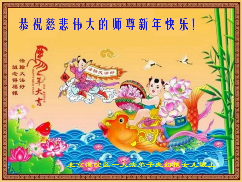 师尊:您将弟子从地狱中捞起,洗净弟子身上的污垢,将“真、善、忍”的宇宙法理传与弟子,弟子对您的感激法用言语表达,值此佳节送上一张贺卡,祝师尊过年好!