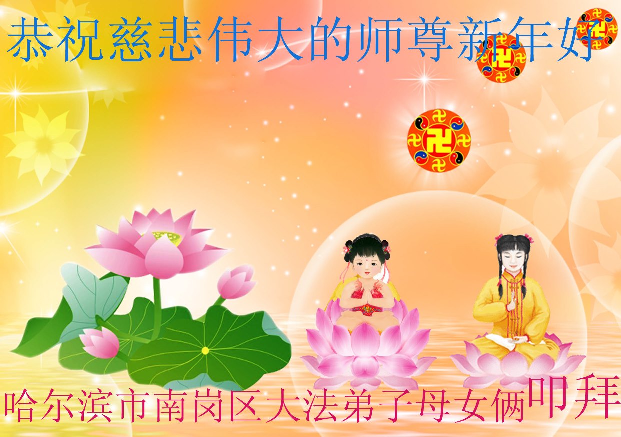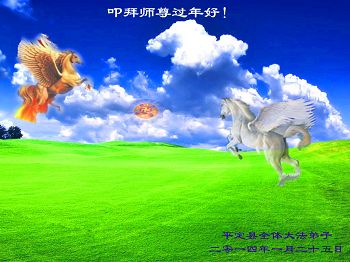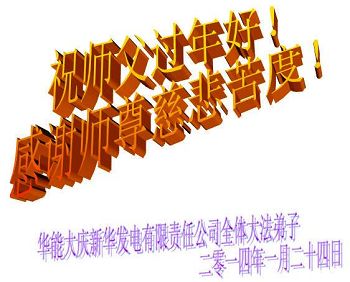 在辞旧迎新甲午年到来之际,黑龙江省建设系统全体大法弟子给慈悲伟大的师父拜年道一声師父辛苦了!并祝伟大的师父二零一四年过年好!
