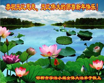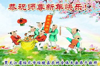 助师正法念师恩,哈尔滨市香坊区一学法小组全体同修在甲午年到来之际给慈悲伟大的师父拜年,祝师父节日快乐!