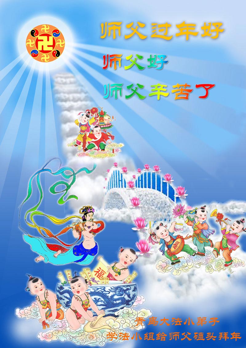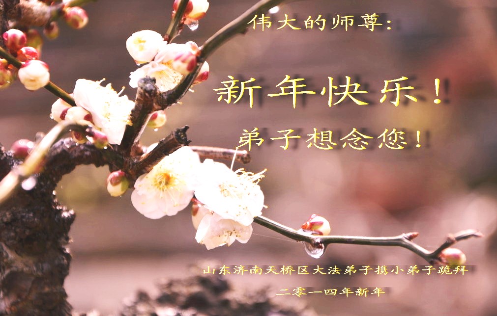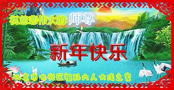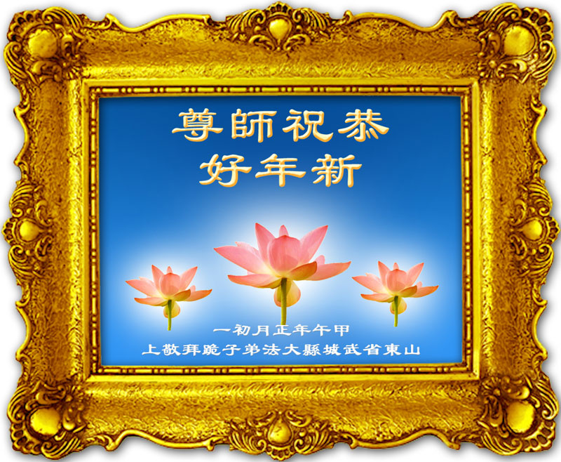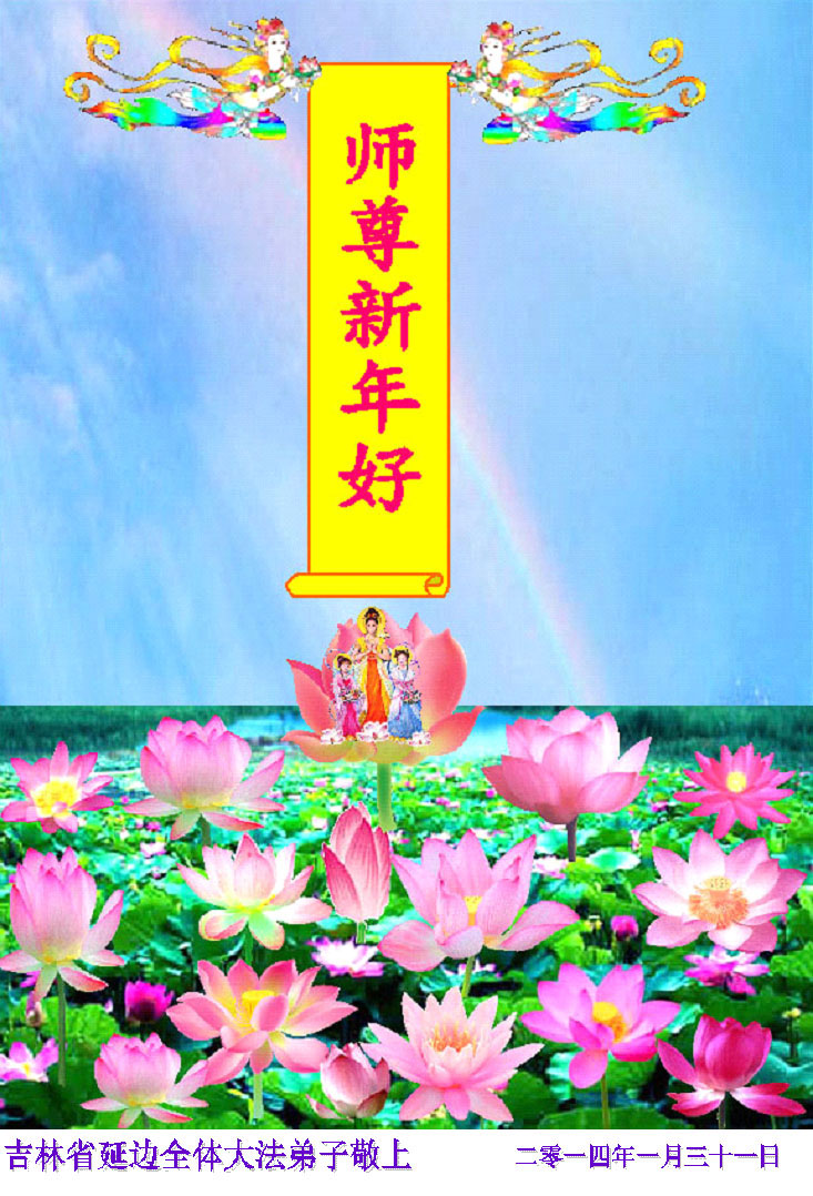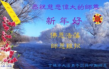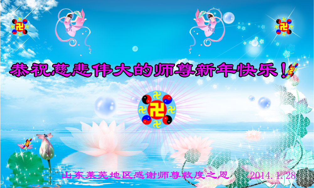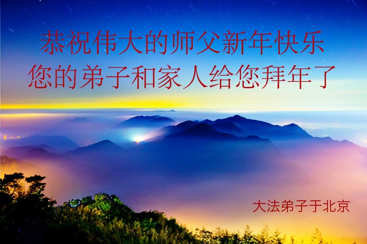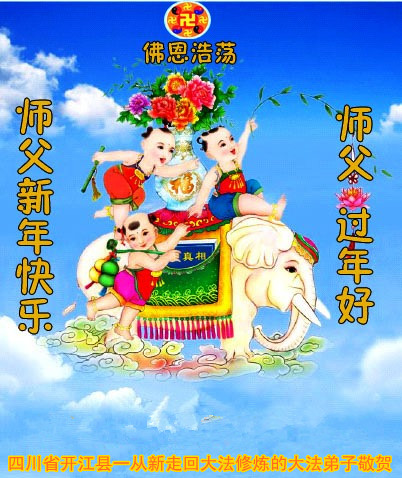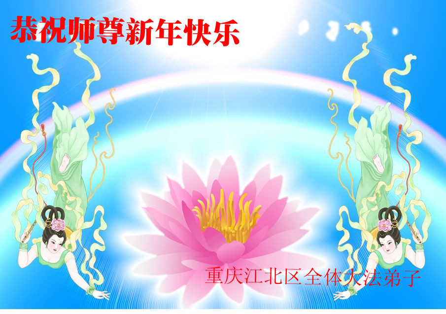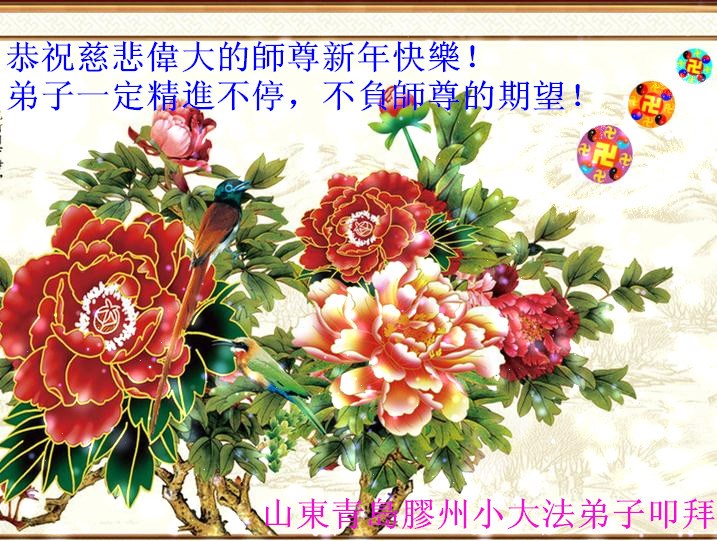 师父,过去的日子里,弟子一直在走旧势力安排的路,没能真正的在大法中修、按照师父说的去做,因而给大法抹了黑,让世人担惊受怕,决心全盘否定旧势力的安排,走出旧我,走出私,真正的做到助师正法、救度众生。在此也代表青岛地区宣传系统大法弟子恭祝师尊新年快乐!
