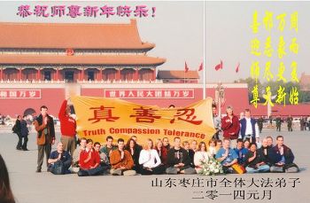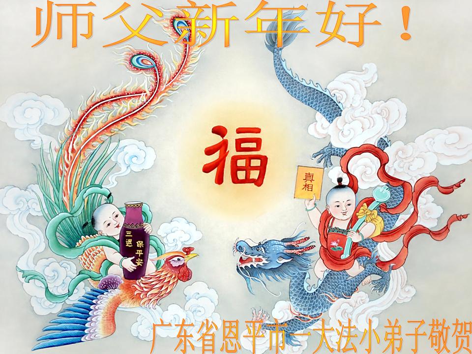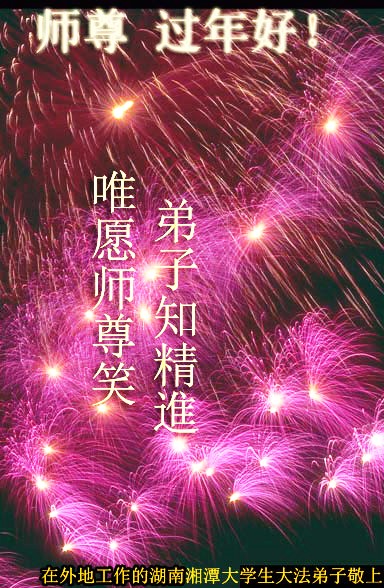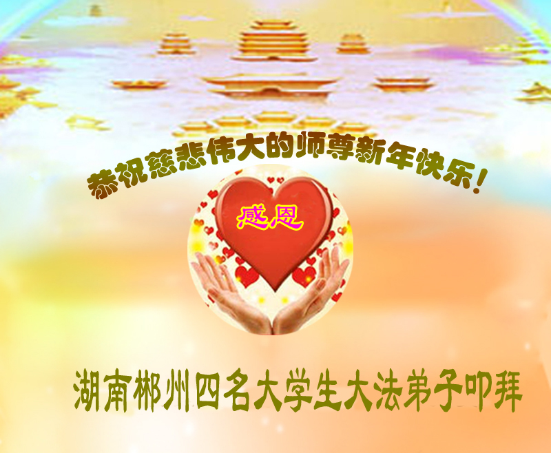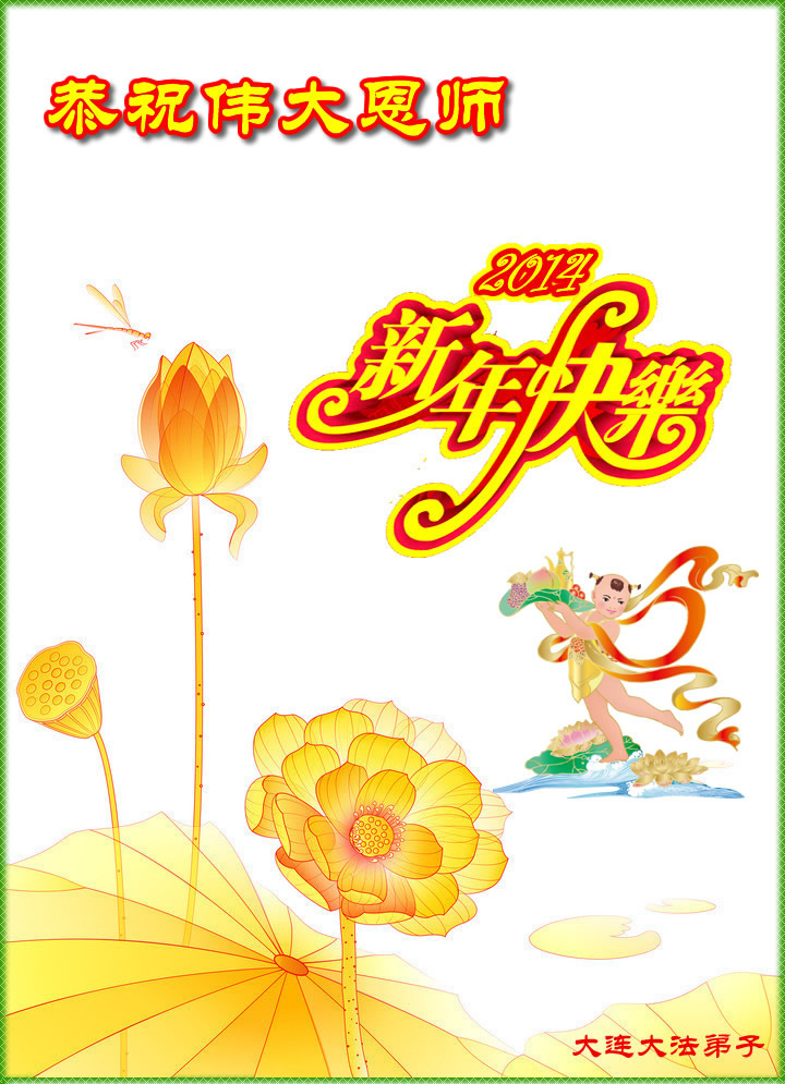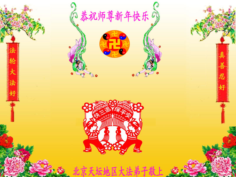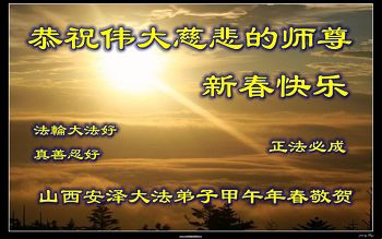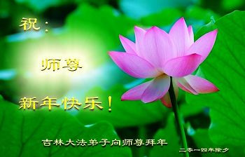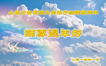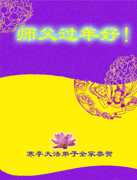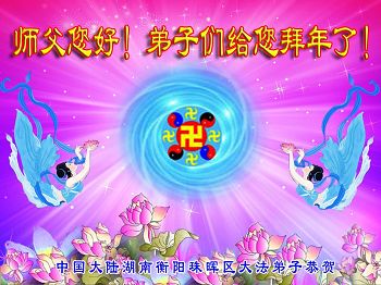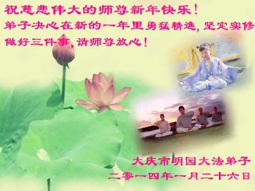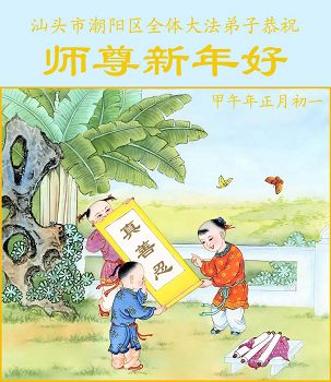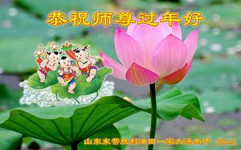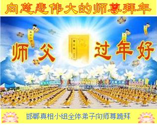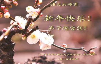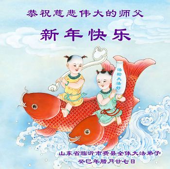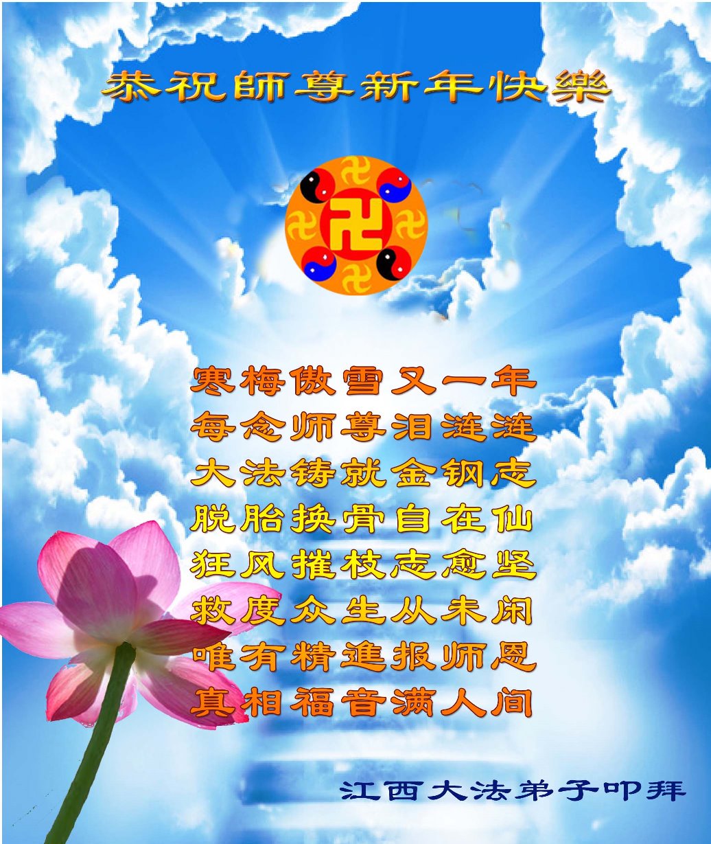师父,过去的日子里,弟子一直在走旧势力安排的路,没能真正的在大法中修、按照师父说的去做,因而给大法抹了黑,让世人担惊受怕,决心全盘否定旧势力的安排,走出旧我,走出私,真正的做到助师正法、救度众生。在此也代表青岛地区宣传系统大法弟子恭祝师尊新年快乐!