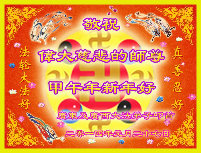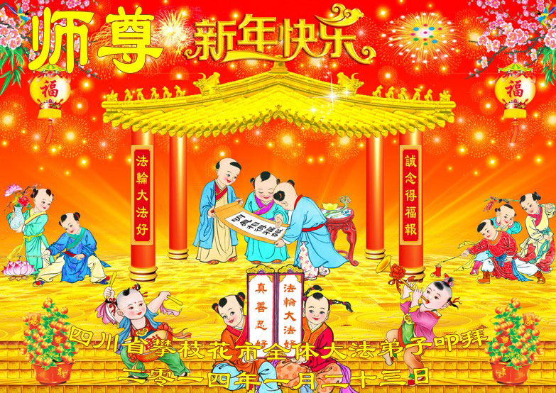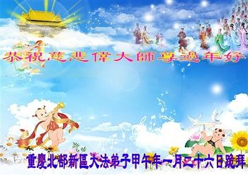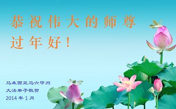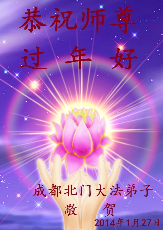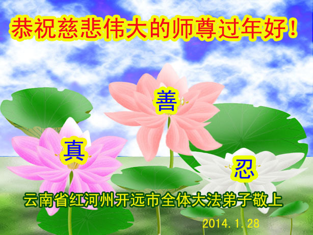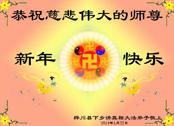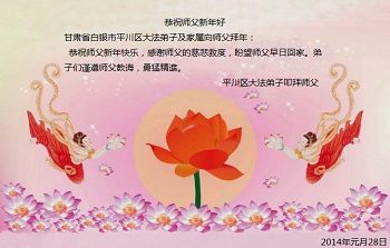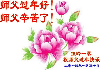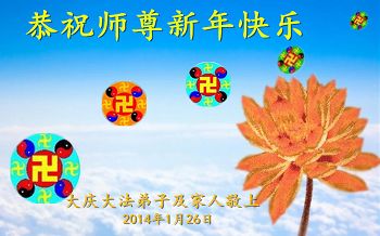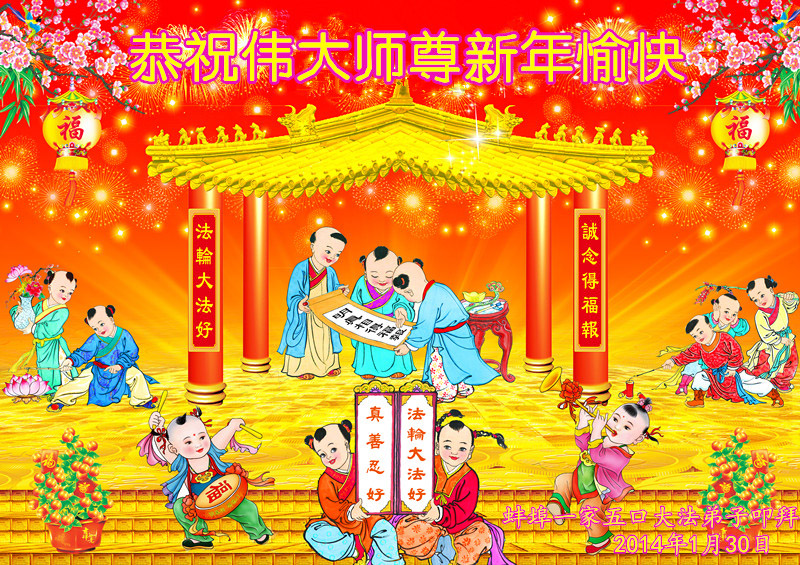 【明慧网二零一四年二月四日】(明慧记者荷雨/肖妍综合报道)传统新年是华夏儿女阖家团聚、辞旧迎新,表达对天地的敬畏、感恩和诚敬的最隆重节日。如往年一样,在甲午新年来临之际,发自肺腑的感恩与问候如雪片般地汇向明慧网,不仅来自五洲四海、各行各业的法轮功学员向恩师拜年,越来越多明白真相、受到法轮大法福佑的各界民众也纷纷冲破中共的重重封锁,向法轮功创始人李洪志先生寄上诚挚的感恩和颂扬,期盼他早日重归故国,福泽神州。
