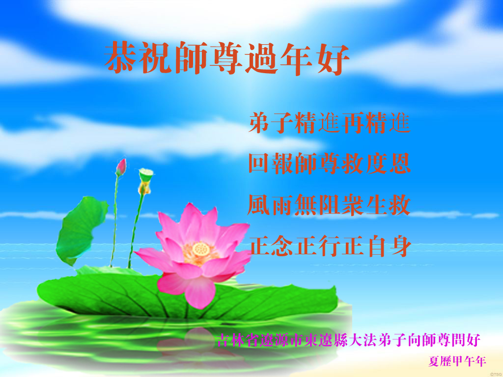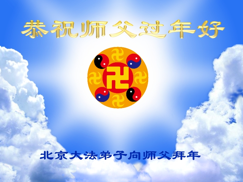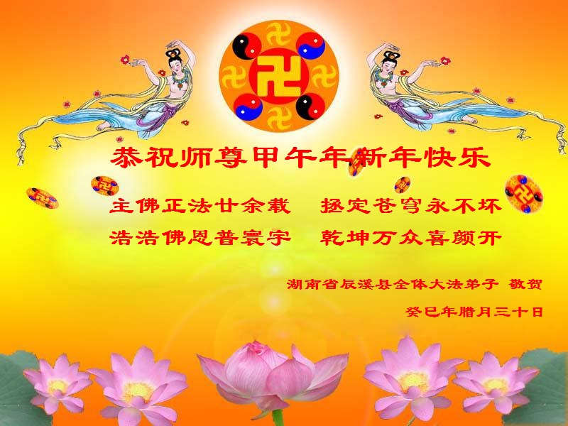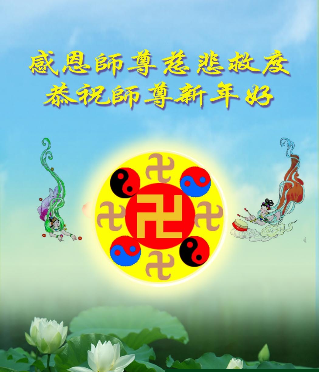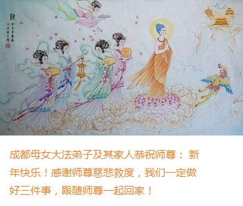 师尊新年好!弟子们想念您,谢谢您的慈悲救度!我们无法用语言来表达对您的敬意,只有在今后做的更好些,多救人,兑现我们的誓约,跟师尊回家。