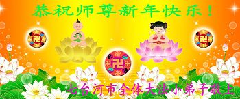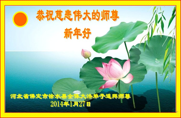 北戴河一企业总经理携全体员工恭祝慈悲伟大的李大师新年快乐:“我们明白了真相之后,在工作中尽量能够做到为别人着想,企业的业绩蒸蒸日上,经济效益出奇的好,我们知道是李大师对我们的恩泽,知道是大法慈悲与我们。我们会一如既往向世人证实法轮功是真正伟大的正法。”