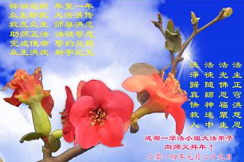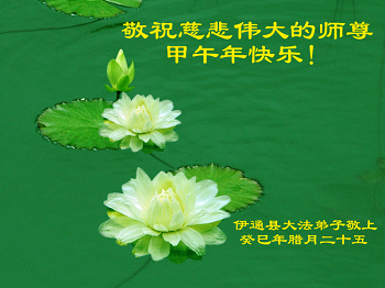 美中法轮大法学会谨代表全体美中大法弟子感恩师尊慈悲苦度无量众生; 呵护加持亿万法徒。在此新年之际, 叩拜师尊, 恭祝师尊新年好!
