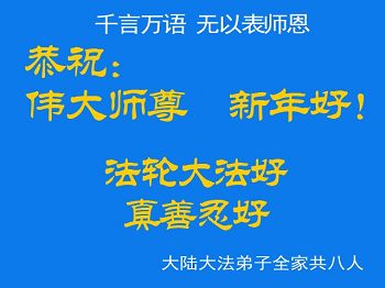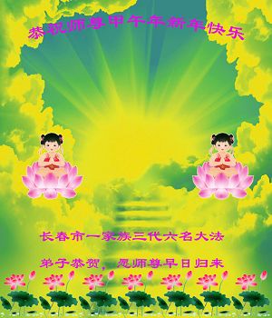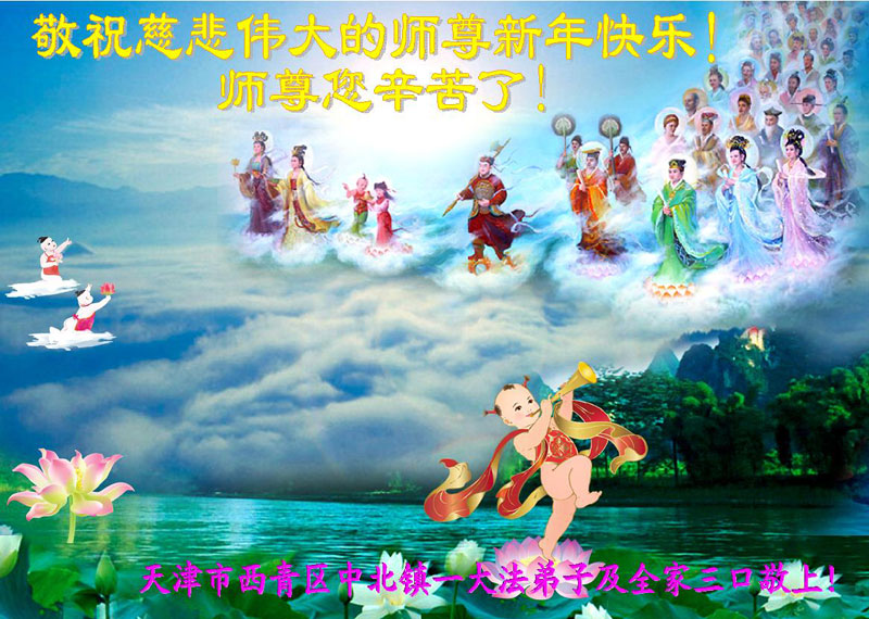 河南周口大家族三十余人给李大师拜年:“我们这个家族共七个家庭三十余口人。明白大法真相之后,我们就毅然退出了中共党团队邪教组织,远离邪恶,保护救人的大法弟子,平时顺应大法真、善、忍的标准行事,尽量多做好事,不做缺德事。托大师福,我们家家都多次受益,上班的工作顺利,经商的买卖兴隆,上学的成绩优秀,最近几年家族中出了六个研究生,家家幸福平安,人人健康愉快。我们对李大师非常敬仰,非常感激!”