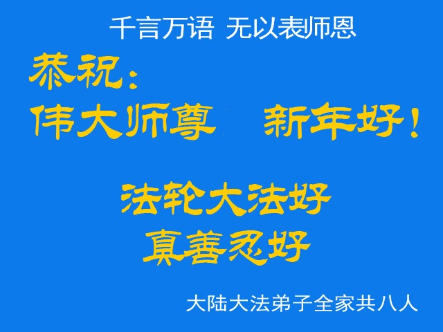 随着法轮大法真相的广传,人们越来越珍惜李洪志先生洪传的真、善、忍佛法,感念他为对人类所做的一切,向法轮大法李洪志师父表达诚敬和感恩正渐成新的贺岁传统。