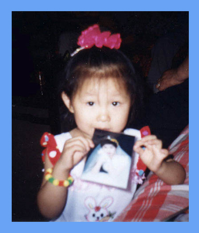 ![]() 小黄颖(乳名:开心)亲吻着妈妈的照片说:想妈妈 |