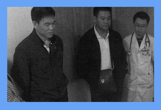 图片中三人是湖南长沙捞刀河洗脑班迫害大法弟子的恶警和打手医生。在迫害法轮功学员蒋美兰(女,65岁)的过程中,右边穿白大褂的恶人(名字不详)是给蒋美兰注射不明药物的“医生”。蒋美兰被注射药物后,当即神智不清,产生恐惧,惊慌失措,连家人都不能认识。