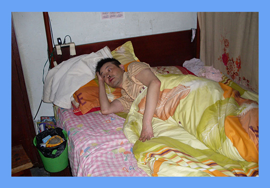 ![]() 被警察打伤的谢德清的儿子谢卫东 |